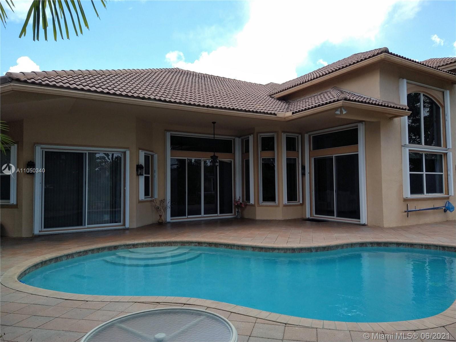 MAGNIFICENT WATERFRONT POOL HOME IN PRESTIGIOUS WATERFORD ESTATES AT HERON BAY. THIS METICULOUSLY MAINTAINED FIVE BEDROOM FOUR BATH FLOORPLAN HOME FEATURES HUGE LIVING AREAS WITH VOLUME CEILING. KITCHEN IS UPGRADED WITH GRANITE COUNTERTOPS AND STAINLESS STEEL APPLIANCES. UPGRADED FEATURES INCLUDE WOOD FLOORS IN ALL THE BEDROOMS AND THE LOFT AREA. ALL BATHROOMS ARE UPDATED. NEW ACCORDION SHUTTERS INSTALLED. MASTER BEDROOM AND ONE BEDROOM LOCATED DOWNSTAIRS. INCREDIBLE RESORT STYLE CLUBHOUSE AND AMENETIES. LOCATED NEAR TOP RATED SCHOOLS.