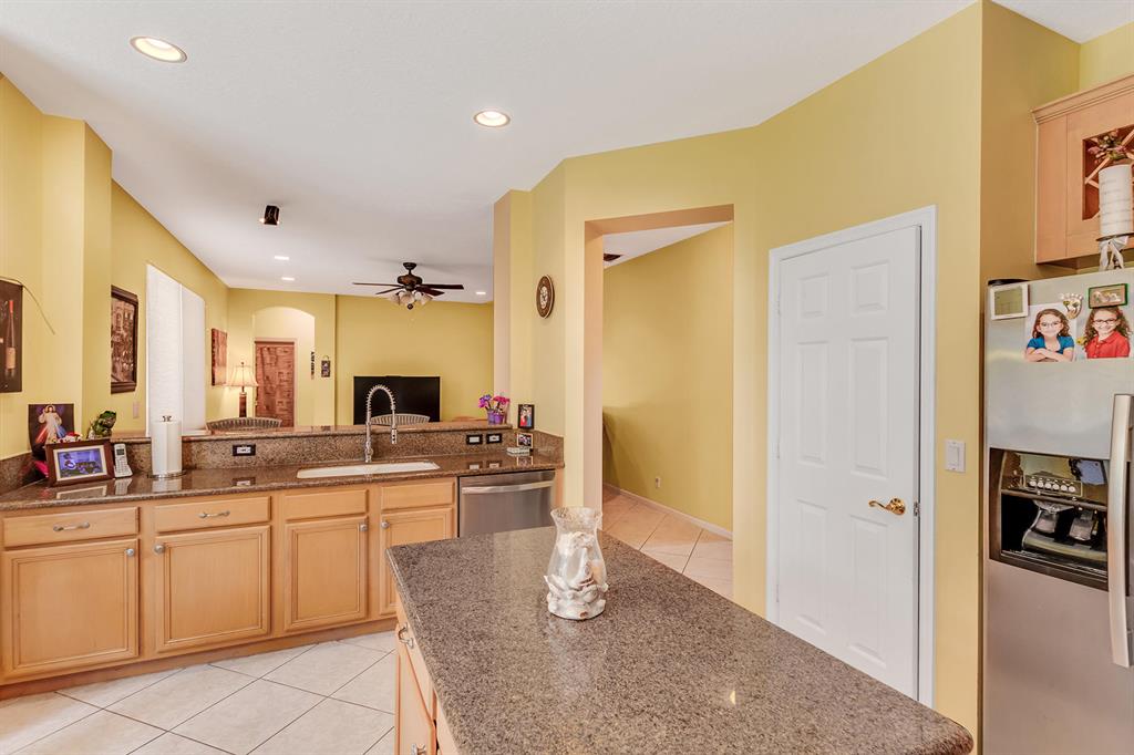 Fabulous 5 bedroom pool home! Located on a small preserve adds wonderful privacy to this spacious home. Fantastic privacy hedge makes this backyard the best in the neighborhood, not to mention the great playhouse and pool and spacious pavered patio.(w baby gate) Large screened and covered patio as well. Split 3 car garage. This home has it all and Inside is just as great, tiled downstairs with wood floors in the downstairs bedroom and bath for guests or your teenagers or mother in law! This spacious room can hold a king size bed. Gourmet kitchen with loads of counter and cabinet space. Granite counters and full wood cabinetry and stainless steel appliances . Huge walk in pantry! Full eat in kitchen and breakfast bar open to the family room.