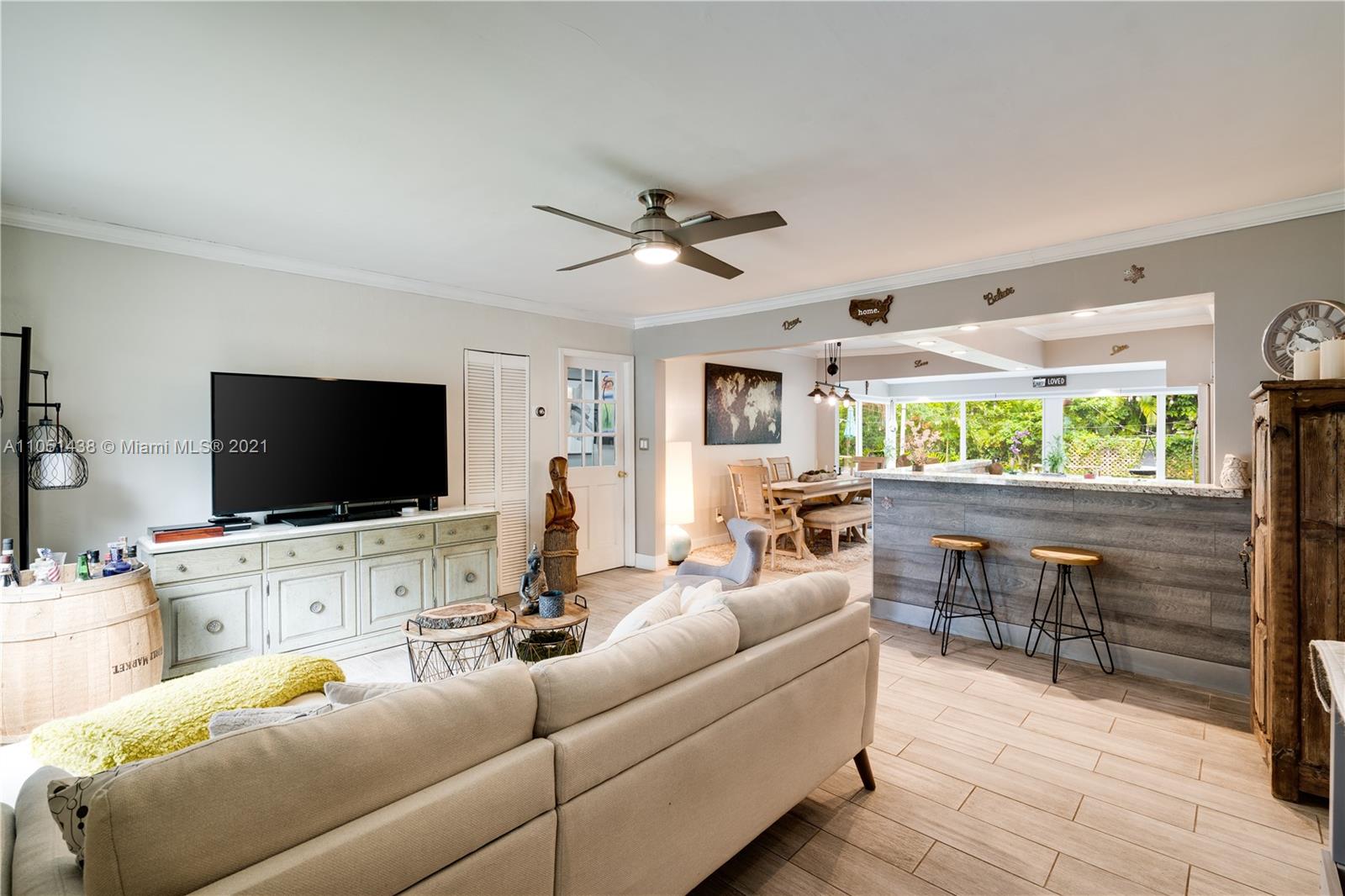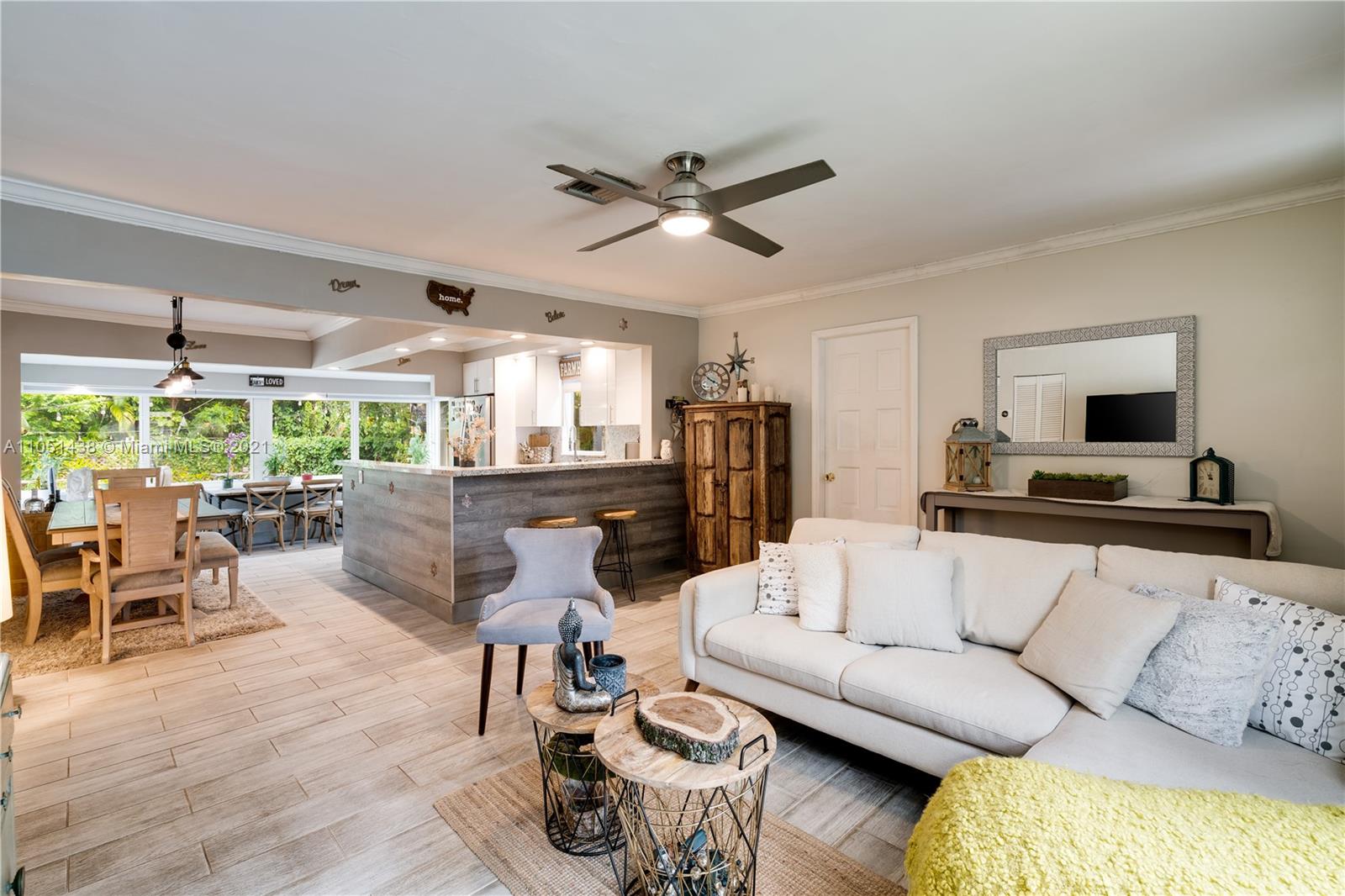 Beautifully renovated Green Oaks home. This lovely house was completely remodeled inside and out. Including all new kitchen, tile floors, top quality high impact windows, NEW A/C unit, brand new bathroom. All renovations have been approved by the city. Backyard is fully fenced with four access gates to fully accommodate cars, RV and boat. With plenty of space for a pool, it’s the perfect space for friends and family gatherings. Separate laundry room and outdoor storage. Amazing location near Bar Harbour mall, 5 miles to Aventura mall, great restaurants, supermarkets and much more. This charming home will not last long! PS: Actual SQFT is 1,204 NOT 858sqft.