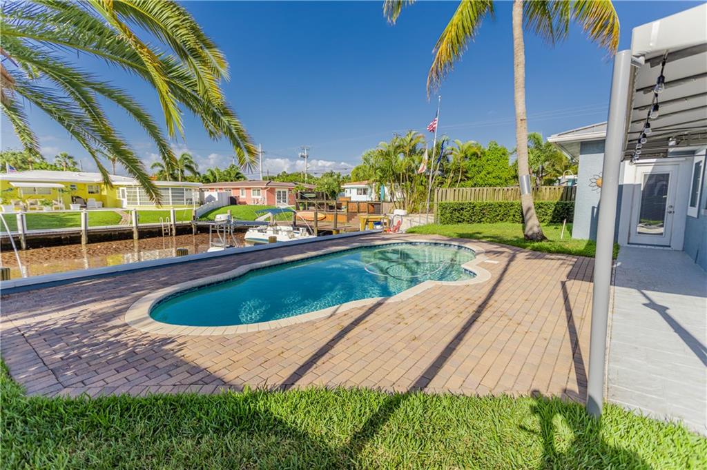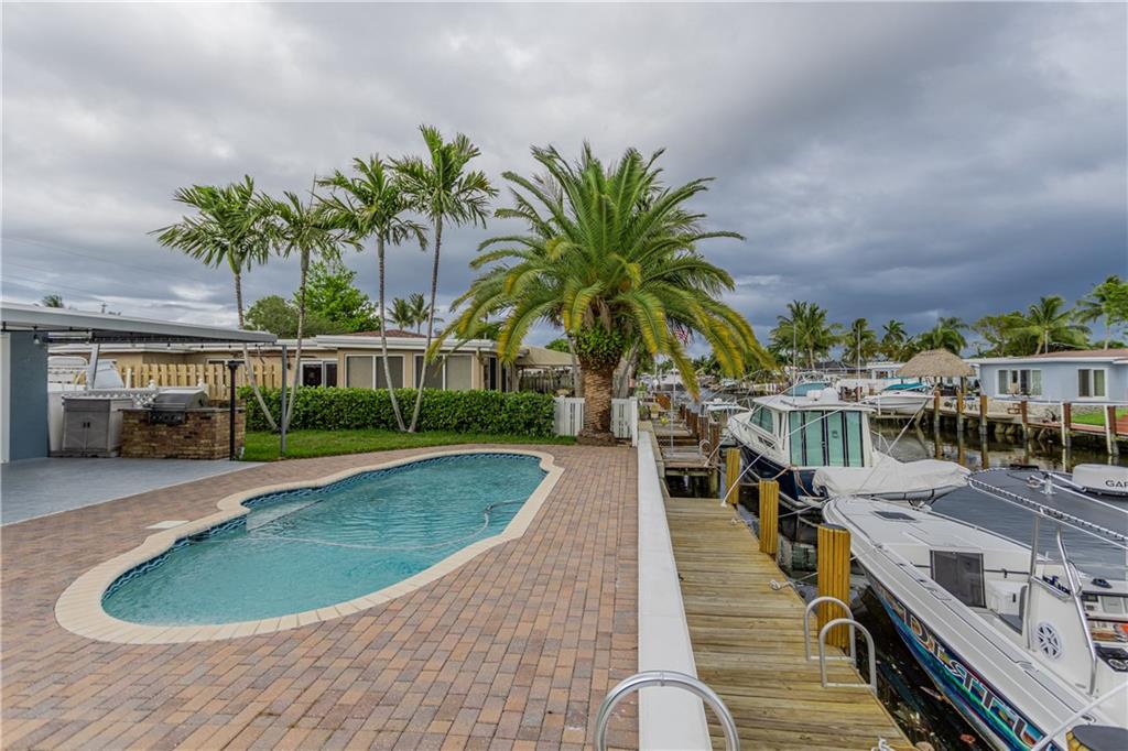 CYPRESS HARBOR GEM! Fabulous 3 bedroom 2 bath Ocean access waterfront pool home. New Aluminum Hip & flat roof 20117, 200 AMP Square D Electric in 2020, Exterior painted in 2017, Interior painted in 2021. New dock/pilings in 2016, Seawall T-Joints in 2021, 2 car garage with extended work tool/bench area. 2 Zone A/C, Many improvements including New Vinyl Patio awning over bar, grass, landscape, sprinklers and timer box. New Impact front door in 2020. Backyard oasis with built in BBQ & Bar. This is a boaters dream house. COPB is replacing the SE 5th Ave bridge now, adding 2 feet of clearance! Please get here quickly, this home will not last long.
