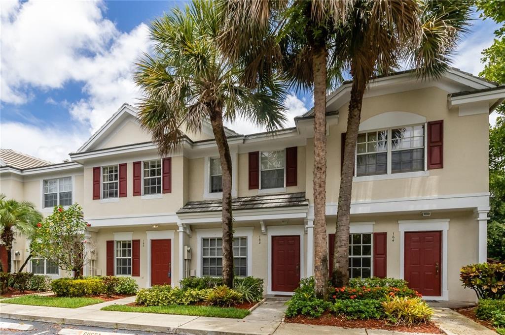 Adorable townhouse in Jacaranda directly on the golf course in your back yard and beautiful lake and fountain in the front. Nice living room 1/2 bath and kitchen downstairs with all tile floors downstairs and wood throughout the rest. Granite countertops & stainless appliances. Upstairs has two nice sized bedrooms and a completely gutted and redone master bathroom. Shutters for all openings, pet friendly community. This is a great place to call home or invest in a long term rental with great occupancy. Walk on the golf course through your backyard. Low HOA that covers exterior insurance and roof maintenance you just need HO6. Great community pool. TONS of guest parking.