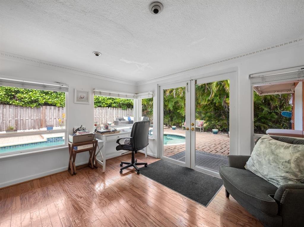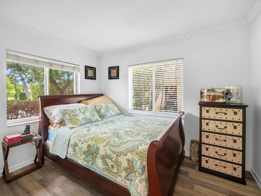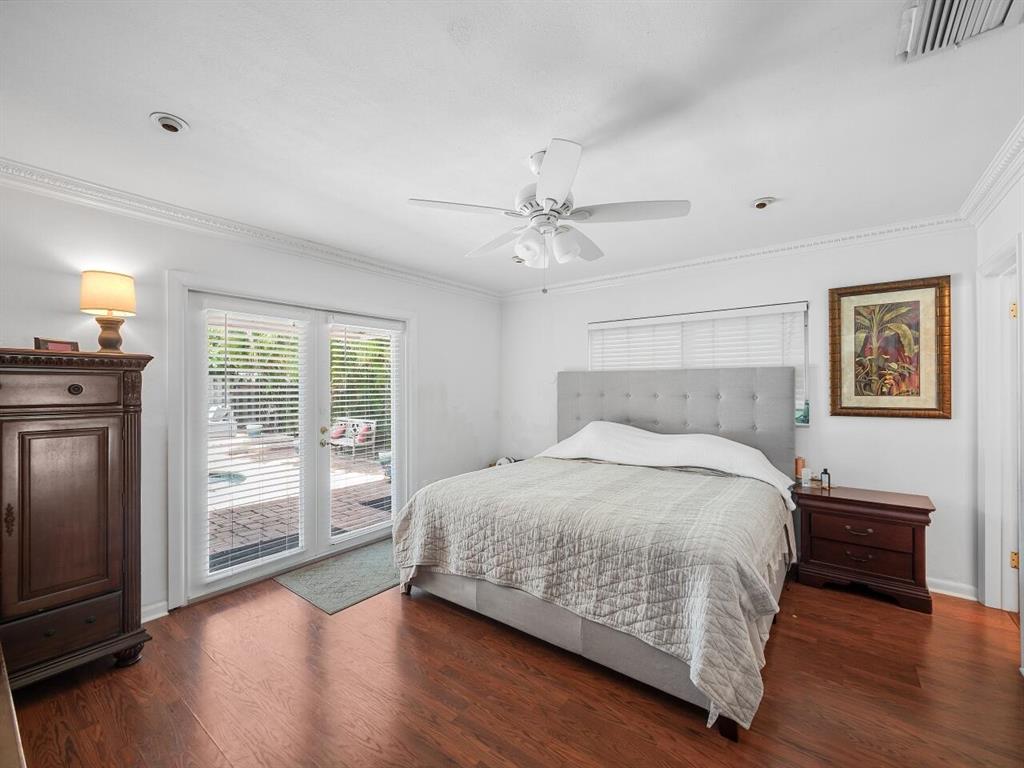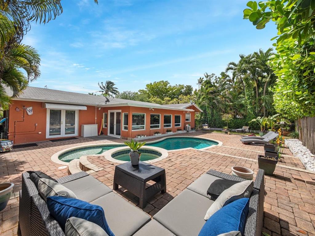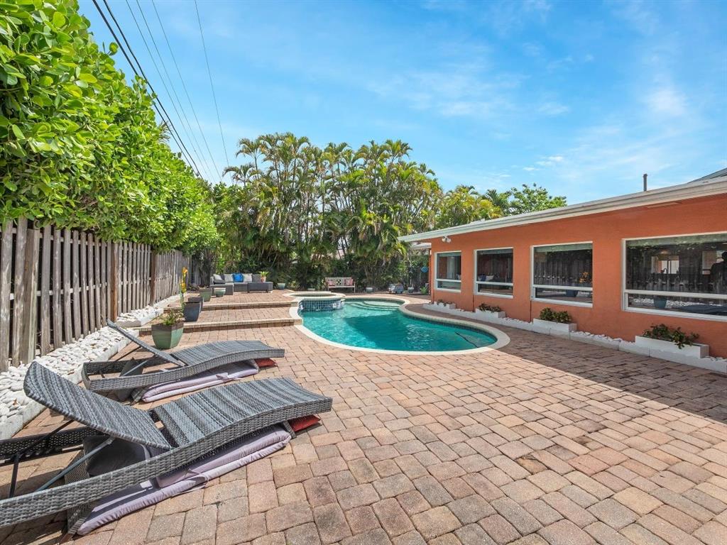- 3 BR & 2 BA with stunning pool & spa. A tree-lined circular drive welcomes you to a home with splendid open floor plan with hard wood floors and crown molding. Inviting foyer leads to a large great room (overlooking pool & spa) with dining area, sitting area, entertainment & bar areas overlooking the kitchen. Kitchen includes eating area & expansive granite counter tops. Master bedroom plus private bath is split from other 2 bedrooms with bath. Spacious paver patio deck includes pool & upper level spa. Large utility room is great for laundry and projects. A short walk to Boca South Beach and close to downtown Boca and marinas for boating.