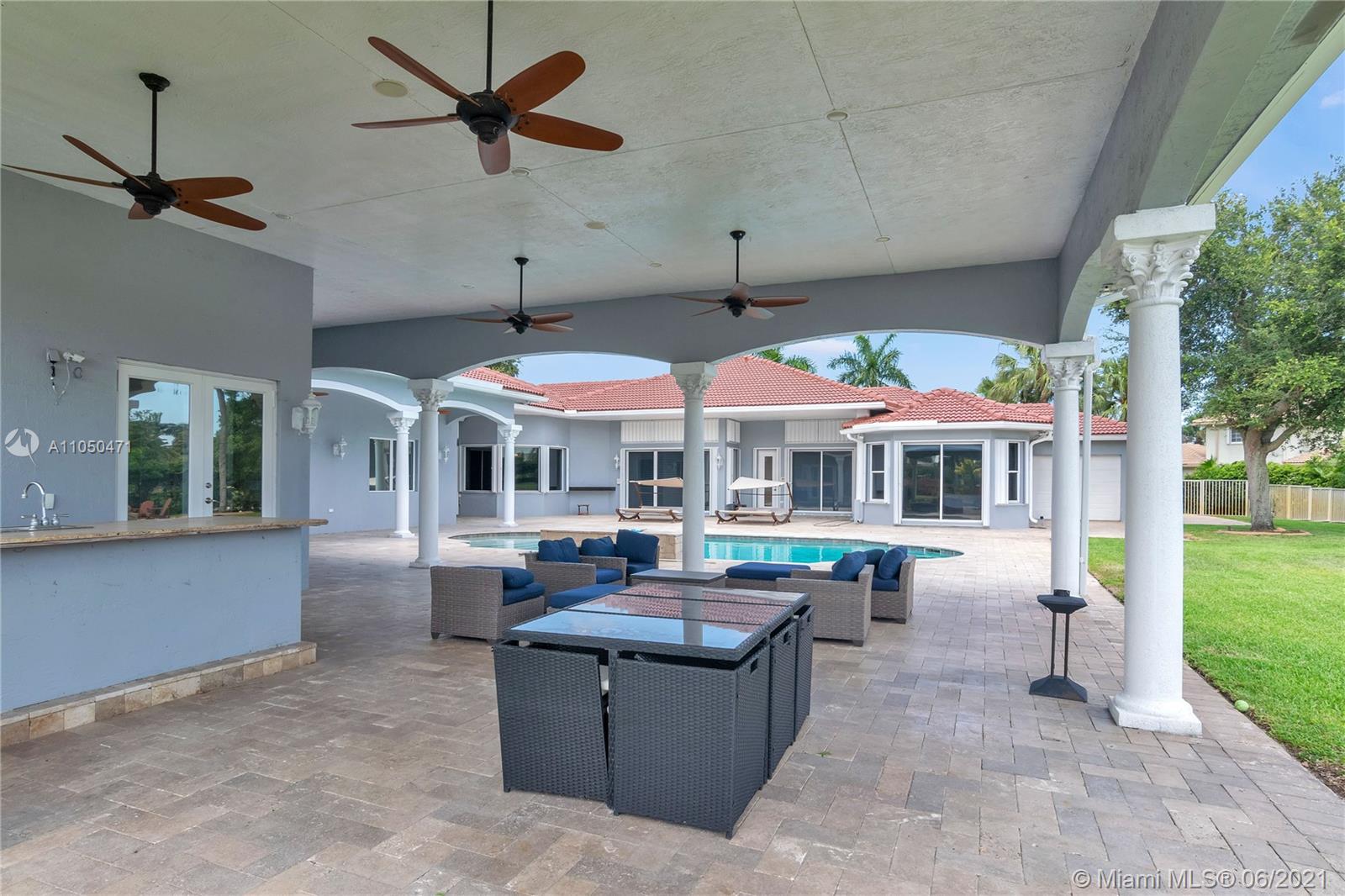 MAGNIFICENT ESTATE HOME IN 24-HR MAN-GATED COMMUNITY,OVERSIZED WATERFRONT LOT. ENTERTAINMENT ROOM FIREPLACE W/BUILT IN BAR W/WINE CLOSET FOR 200+BOTTLES, ELEGANT GOURMET KITCHEN W/GRANITE COUNTER TOPS, SUBZERO REFRIGERATOR, OUTDOOR MARBLE DECK, OUTDOOR LIVING ROOM W/SUMMER KITCHEN & BIG POOL WITH A BAHAMA BENCH , ACCORDION SHUTTERS AND IMPACT GLASS THROUGH HOUSE. SECURITY SYSTEM & BOSE SURROUND SOUND IN & OUTSIDE. A GRADED SCHOOLS, AND VERY CLOSE TO I-595, 15 MINUTES AWAY OF FT LAUDERDALE INTERNATIONAL OWNERS ARE WILLING TO REMODEL THE HOUSE TO SUIT FOR THE NEW BUYERS. COME AND CHECK THIS WONDERFUL OPPORTUNITY.