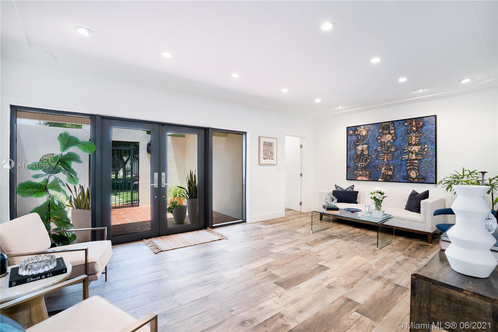 Turn-key, pool home located in prime, pedestrian-friendly location in sought after South Gables. The charming foyer and formal living room opens to a grand family space which is adjacent to the bright, clean, open kitchen. Enjoy the large mosaic tile swimming pool and beautifully landscaped backyard with oak trees and tall hedges for privacy. This home offers a spacious floor plan, gorgeous wood-look porcelain tile throughout, and impact glass which brings in natural light and offers views of the gardens and pool. Brand new clay tile roof & new A/C, both in 2020. Steps away from the neighborhood park, restaurants, Whole Foods and Publix, A+ schools, and more. This home is a must-see!