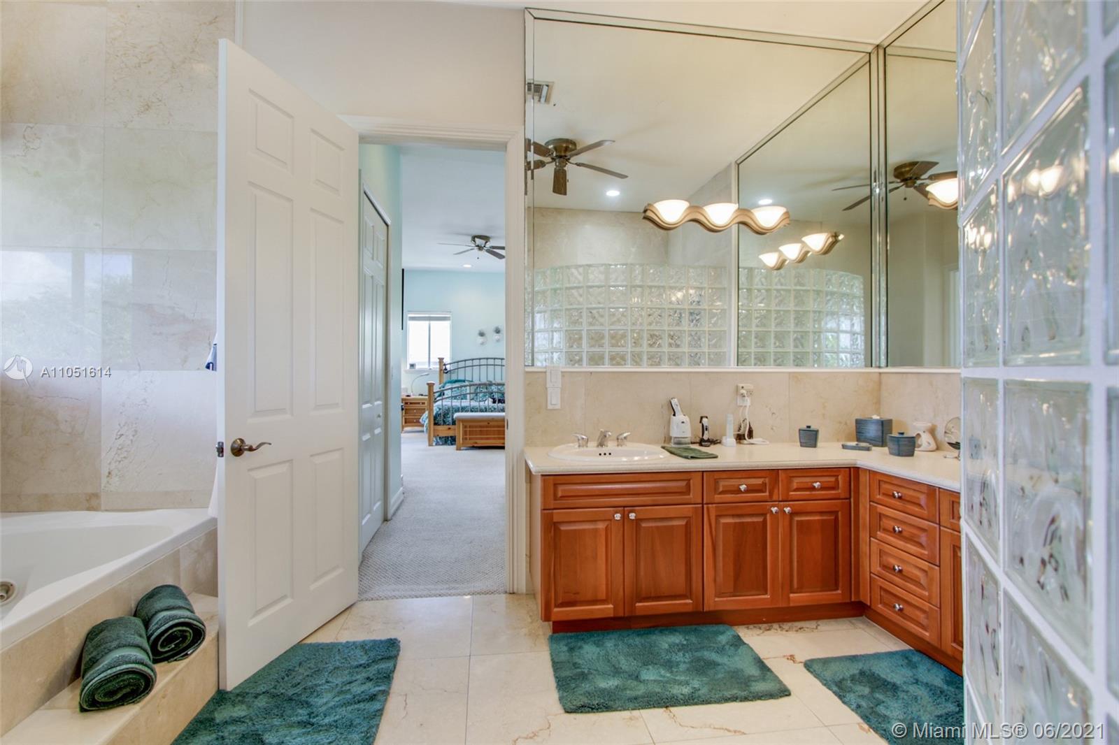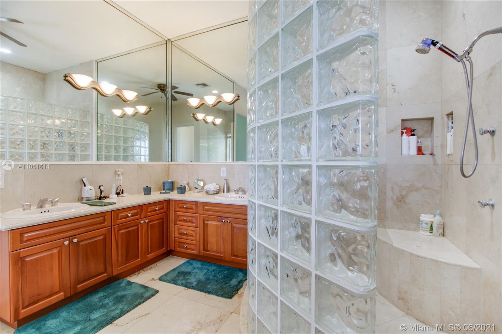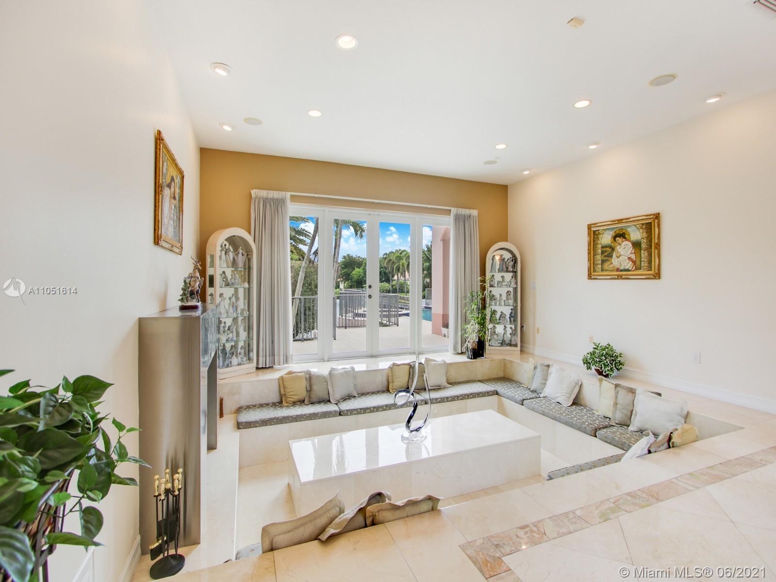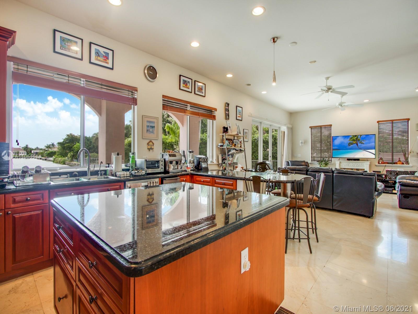 One of only a few end lot homes in Gables by the Sea, this grand 4,407 SF home sits at the end of the waterway with lush landscaping for the ultimate in waterfront privacy. At 12,500 SF, the lot is open and sunny, with water views in the backyard, a beautiful infinity edge pool, and large covered terraces both upstairs and downstairs for outdoor entertaining. Inside, the spacious home boasts 12 foot ceilings, a large eat in kitchen that connects to the family room, formal living and dining rooms, and a separate game room. Each of the home’s 5 bedrooms has its own en-suite bath, and an upstairs laundry room & kitchenette provide the ultimate in convenience. Gorgeous 2 story Mediterranean style home built in 2002 offers great frontage on Red Road w/quick access in & out of the neighborhood.