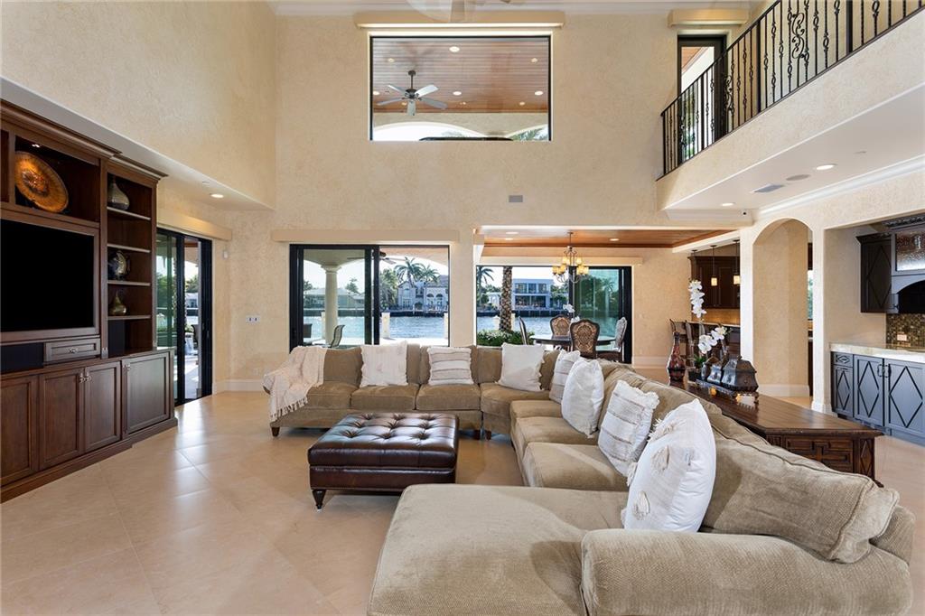 Custom built in 2014 with no detail spared, this impressive five-bedroom estate, with 7,769 total square feet, offers a thoughtful layout that accommodates water views and allows for entertaining to evolve effortlessly, flowing from room to room with ease. Its elegant Mediterranean exterior features a tower, bays, and shuttered windows in the grand entrance, while in the back of the estate, banks of sliding doors open to the direct intracoastal water-view pool and patio. A luxe trophy estate, with 150 +/- feet of direct Intracoastal Waterway frontage offering wide water views in sought-after Dolphin Isles, a Fort Lauderdale Beach enclave, within two-blocks to the sand. Amenities include a wine room, bar, volume ceilings and a great floor plan affording an easy flow for entertaining.