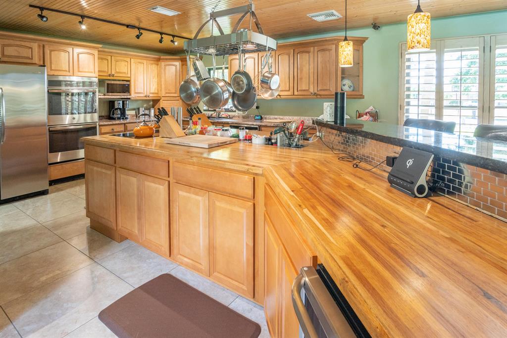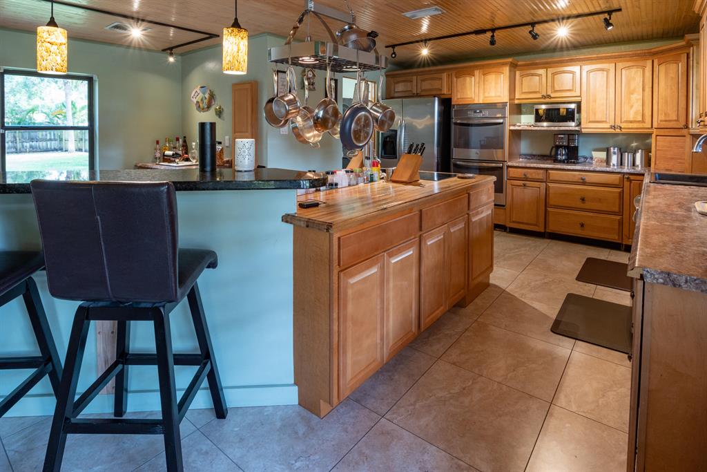 This 3 bedroom 2 bath home wont last! Situated on almost an acre of land this CBS built pool home has been lovingly renovated. Upgraded chefs kitchen includes a double oven, stainless steel appliances, butcher block counter tops and large pantry/laundry area will please the home chef of your family. Architectural details include wood burning fireplace, beamed ceiling in family room and tongue and groove ceilings in kitchen, plantation shutters and large tile through out home. Just off the family room is a large covered patio perfect for dinner and drinks by the pool. Large enclosed storage area in back yard is perfect for a game room, man cave, storage etc...Yard is fully fenced. Easy to show.