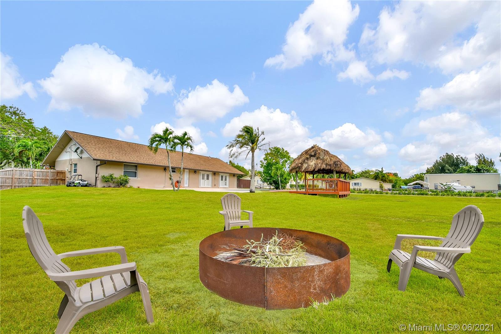 This Beautiful fully fenced and gated ranch style 4/2 Pool home is 2734 Sqft under air and sits on a 1.18Acre piece of land in the most sought after Equestrian town of Southwest Ranches.This Home boasts Open beam ceilings,Custom interior plantation style window treatments,400 sqft Guest/Bonus Room w/ private entrance for a perfect in laws quarters upgrade. Wi-Fi connected call box and App, Miami Dade County rated galvanized storm panel Hurricane protection for every opening in the home. large swimming pool, Tiki hut with Electric (Rethatched less than a month ago,3 year leak free warranty),Steel building with a 25x25 concrete pad on either side,220v Power and panel set up to back feed house for HUGE generator noise reduction.18x40 Covered RV Toy overhang This Property is TURN KEY!