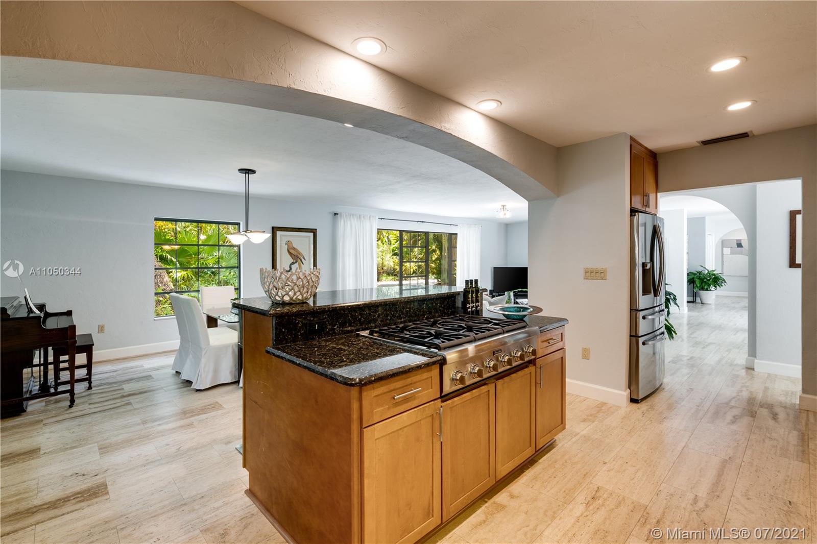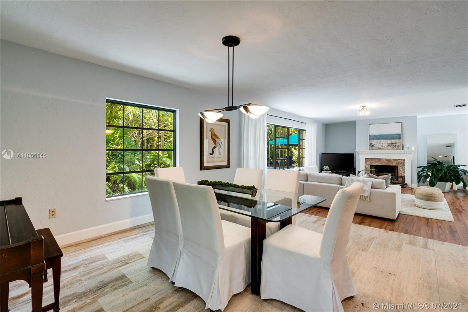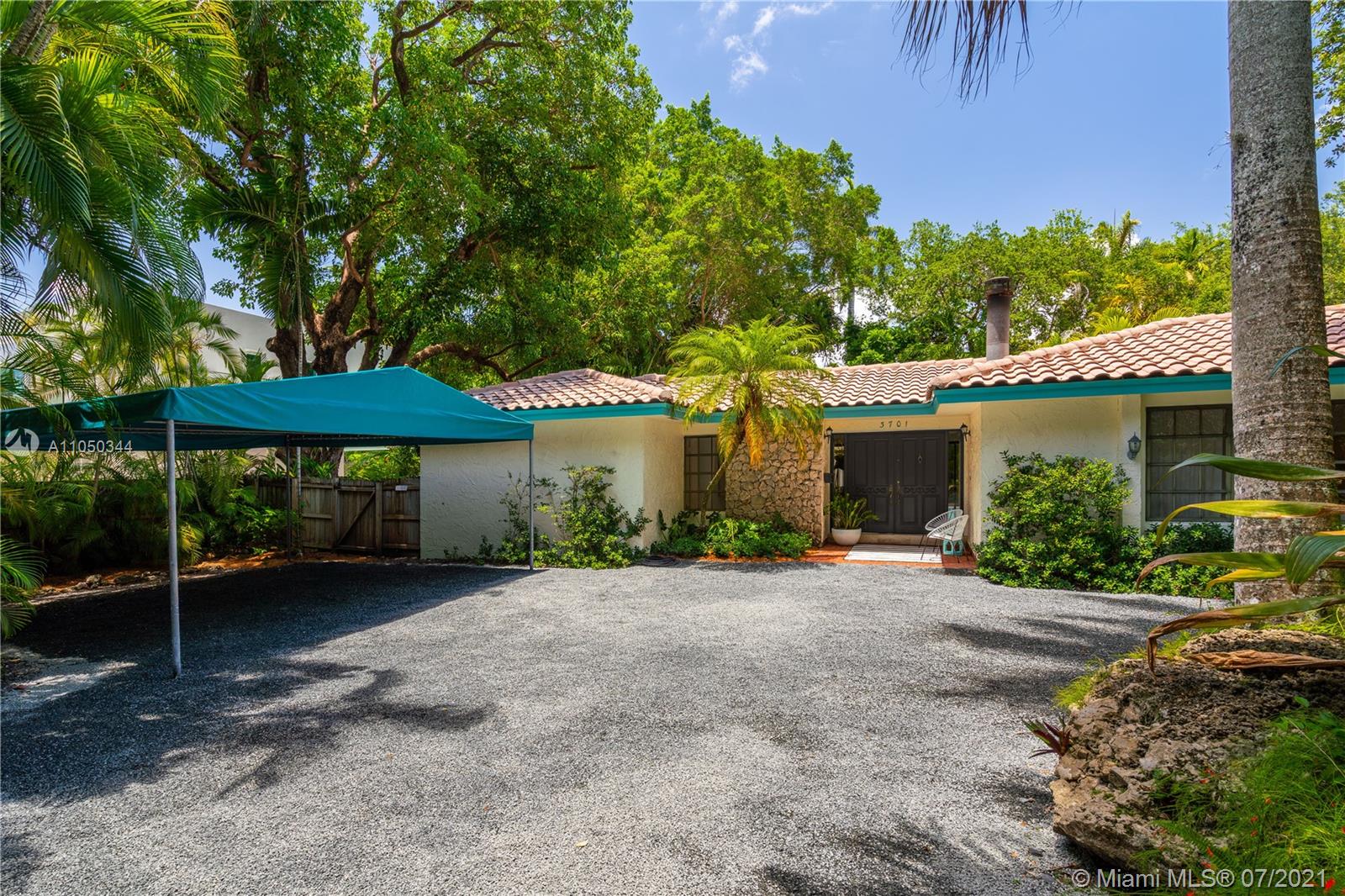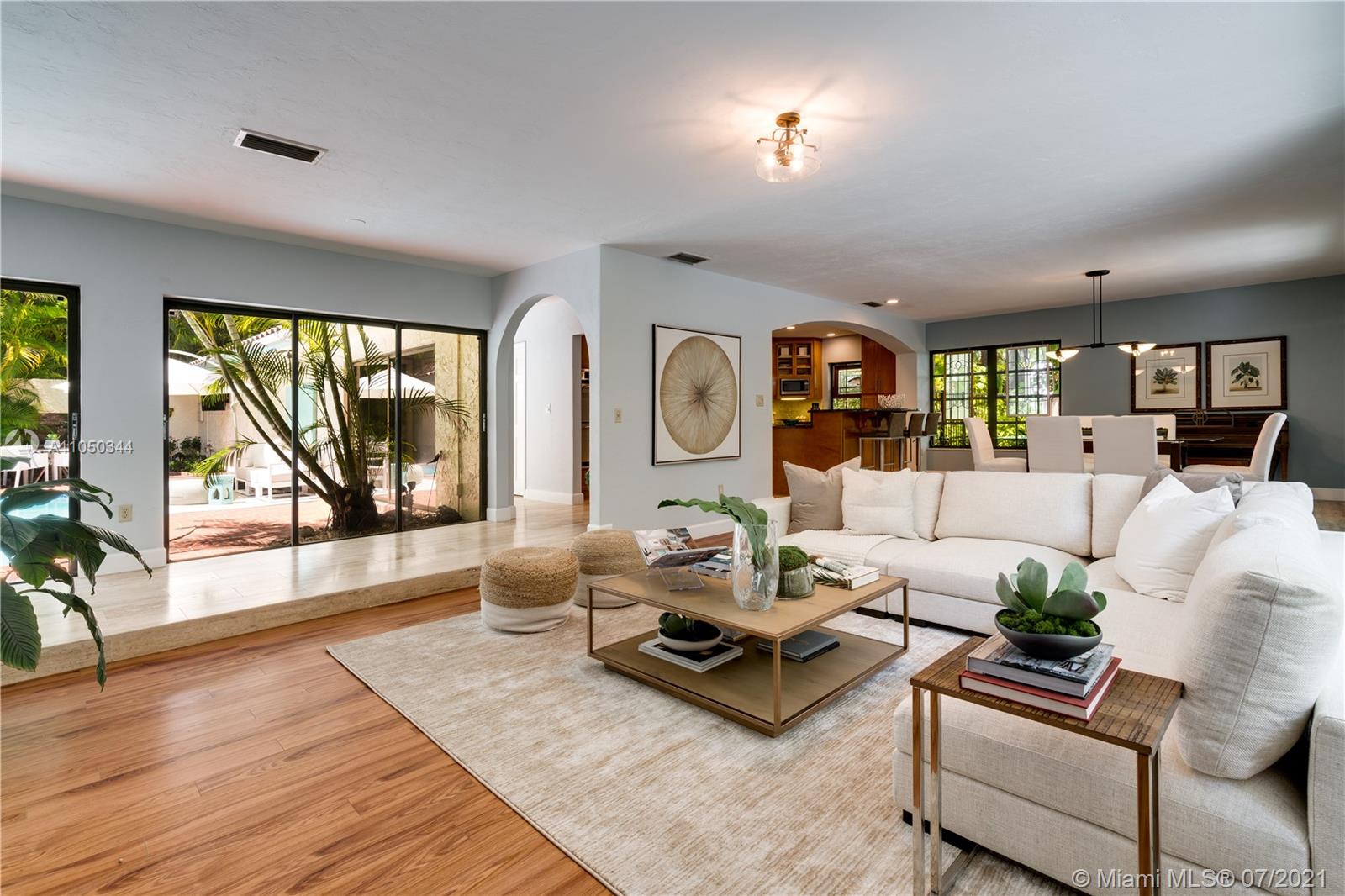 This highly sought-after Coconut Grove address is the location of this beautiful 5-bedroom home with more versatility than can be imagined. It provides a near perfect balance of living and working spaces. All the bedrooms are oversized with generous closets. The main suite has both a lavish, remodeled bath as well as a bonus room which can serve as a gym, studio or office. The elegant living room with its classic fireplace adjoins a remodeled kitchen and dining area that is the heart of the home. A generous in-law suite, office and family room provides additional room for everyone to live, work and play. The ideal U-shape floorplan provides a view of the sparkling pool from almost every room in the house. Located in Flood Zone X, no flood insurance is required. A Very Special Home.
