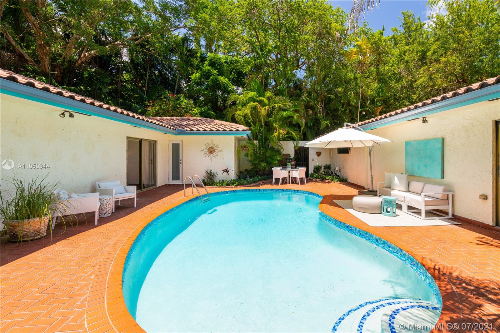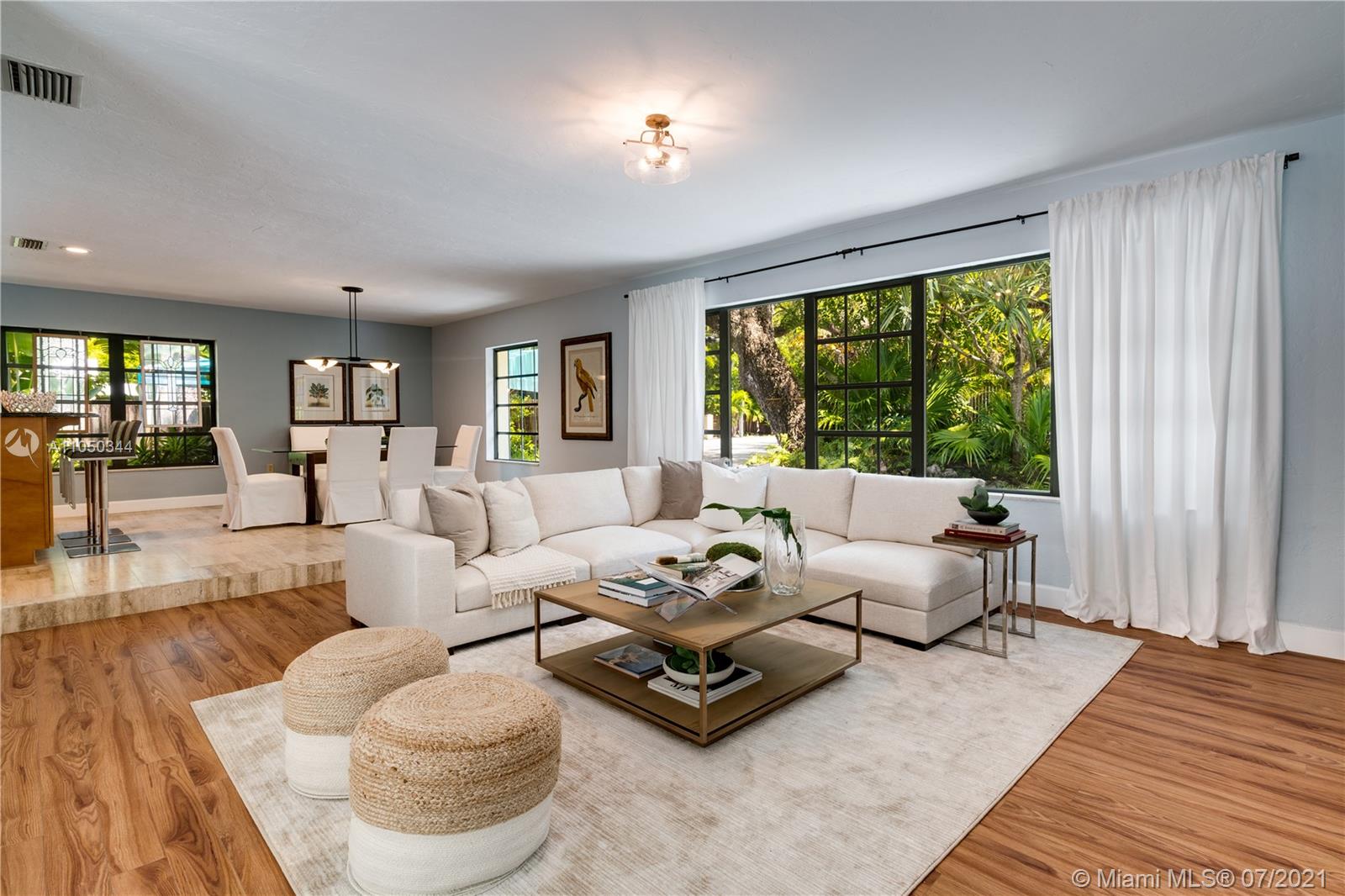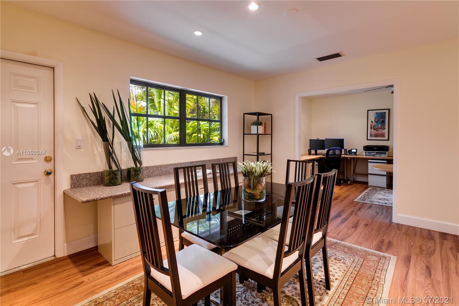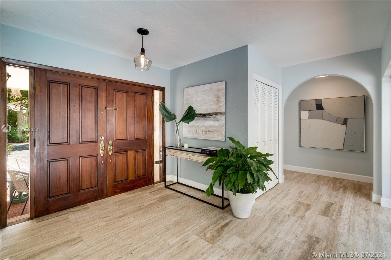 This highly sought-after Coconut Grove address is the location of this beautiful 5-bedroom home with more versatility than can be imagined. It provides a near perfect balance of living and working spaces. All the bedrooms are oversized with generous closets. The main suite has both a lavish, remodeled bath as well as a bonus room which can serve as a gym, studio or office. The elegant living room with its classic fireplace adjoins a remodeled kitchen and dining area that is the heart of the home. A generous in-law suite, office and family room provides additional room for everyone to live, work and play. The ideal U-shape floorplan provides a view of the sparkling pool from almost every room in the house. Located in Flood Zone X, no flood insurance is required. A Very Special Home.