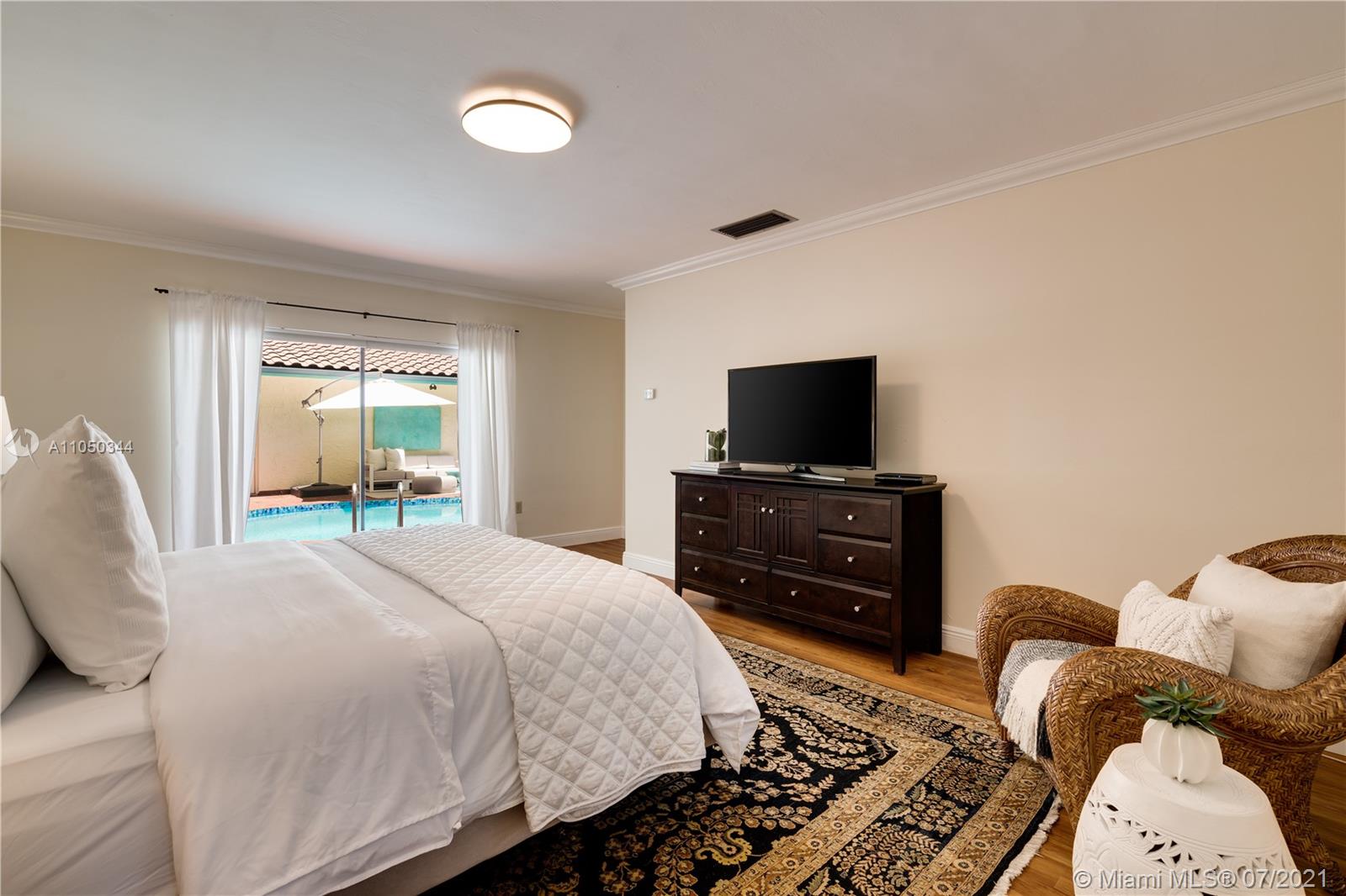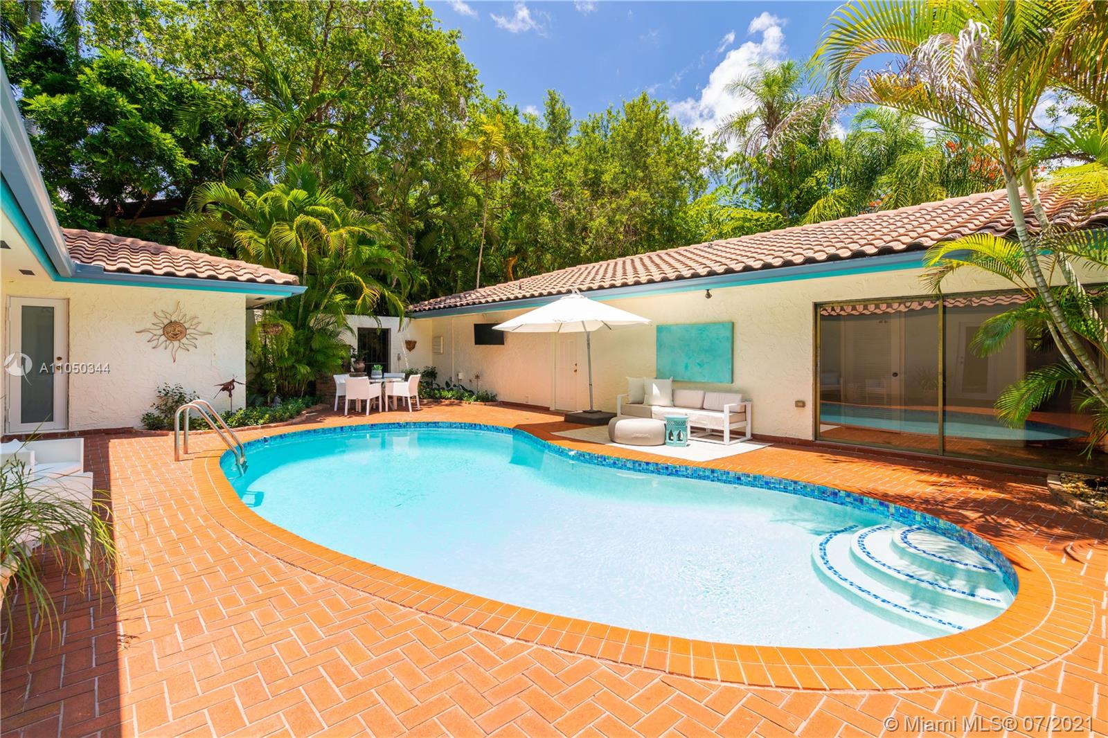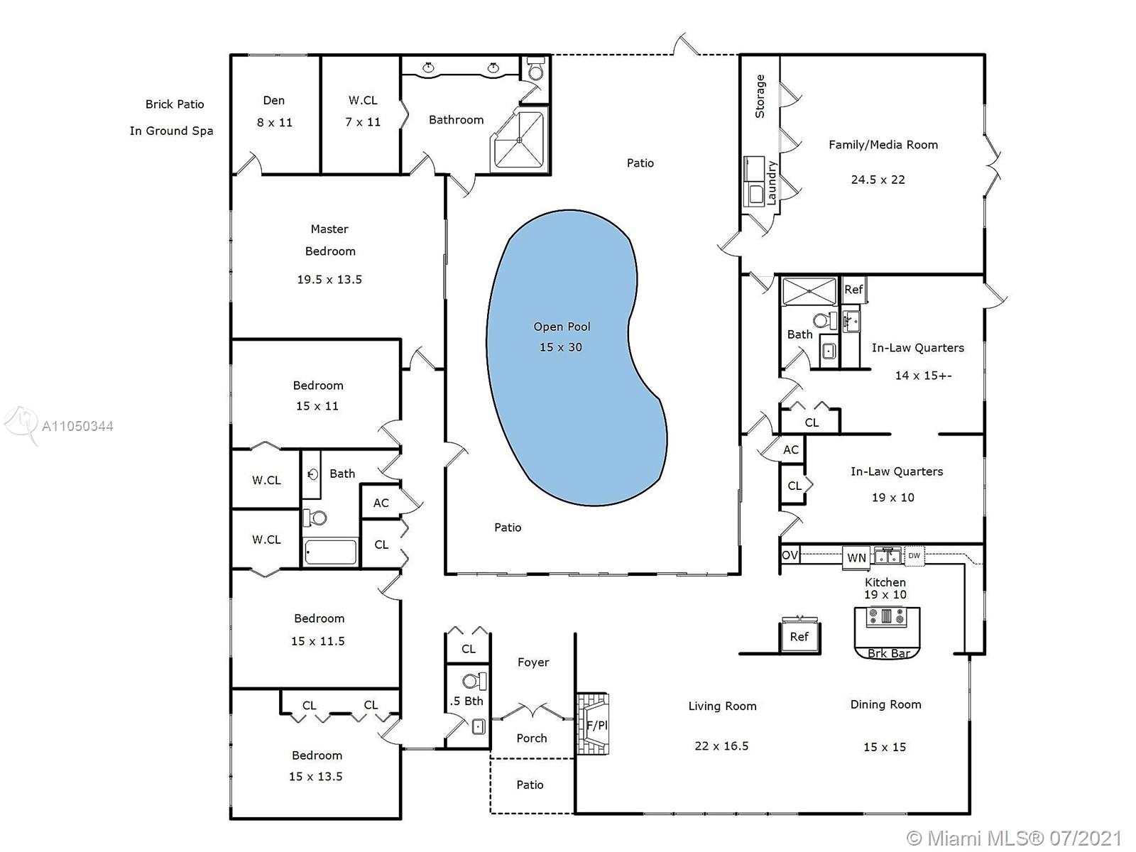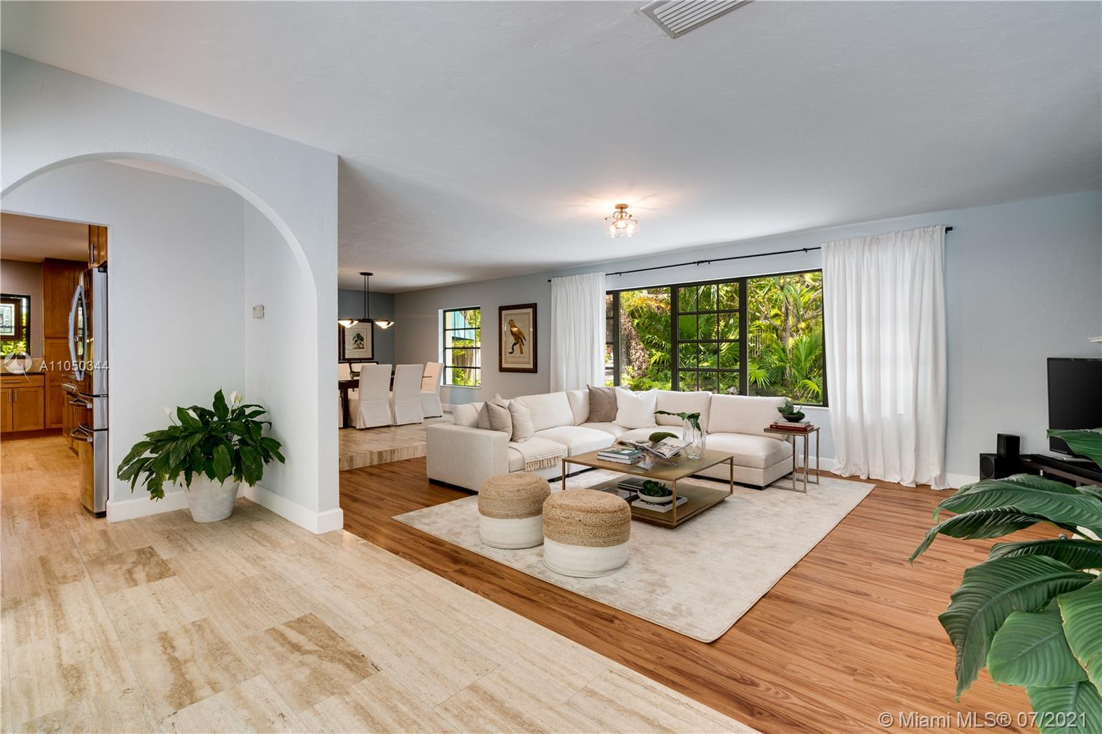 This highly sought-after Coconut Grove address is the location of this beautiful 5-bedroom home with more versatility than can be imagined. It provides a near perfect balance of living and working spaces. All the bedrooms are oversized with generous closets. The main suite has both a lavish, remodeled bath as well as a bonus room which can serve as a gym, studio or office. The elegant living room with its classic fireplace adjoins a remodeled kitchen and dining area that is the heart of the home. A generous in-law suite, office and family room provides additional room for everyone to live, work and play. The ideal U-shape floorplan provides a view of the sparkling pool from almost every room in the house. Located in Flood Zone X, no flood insurance is required. A Very Special Home.