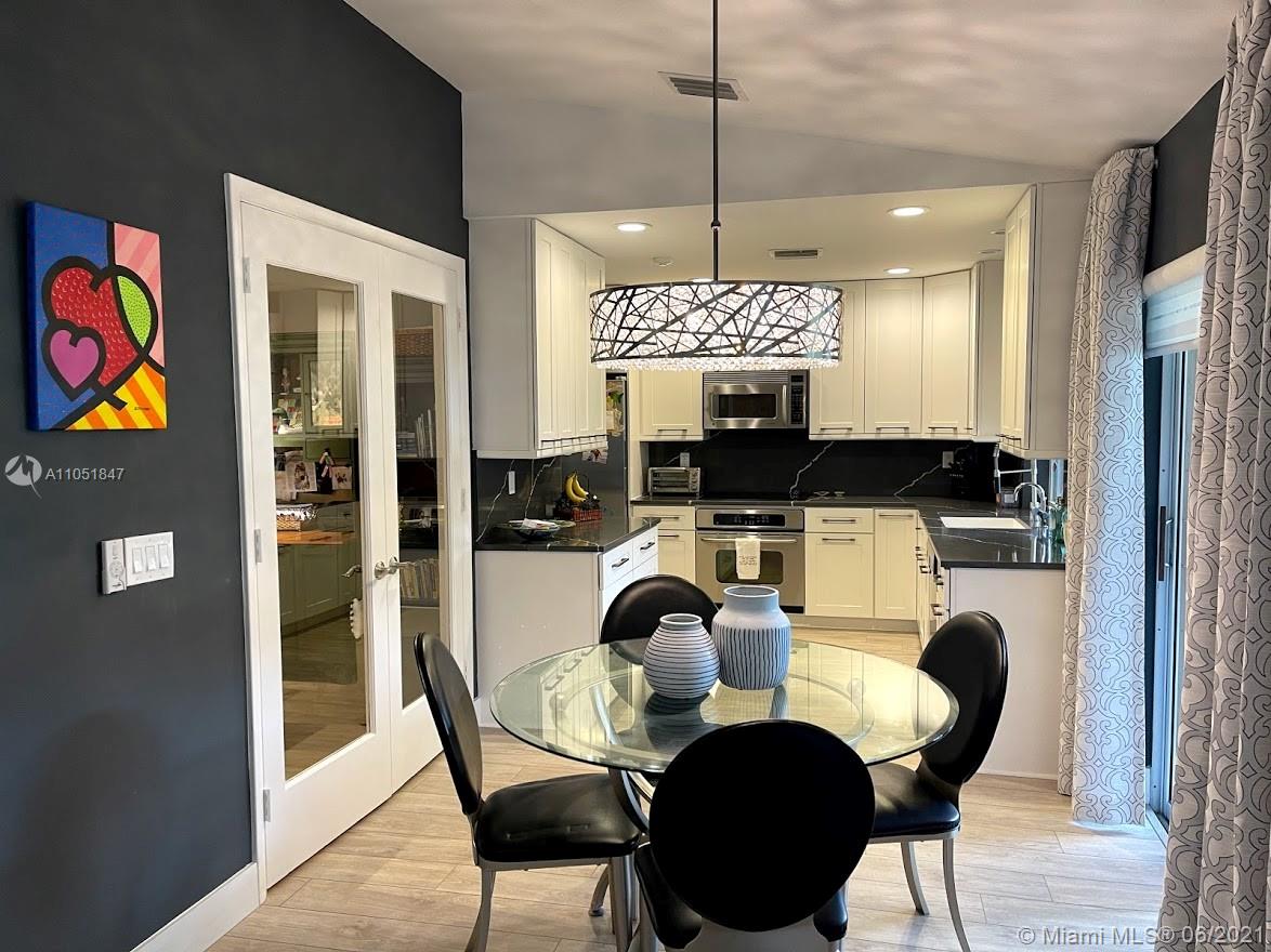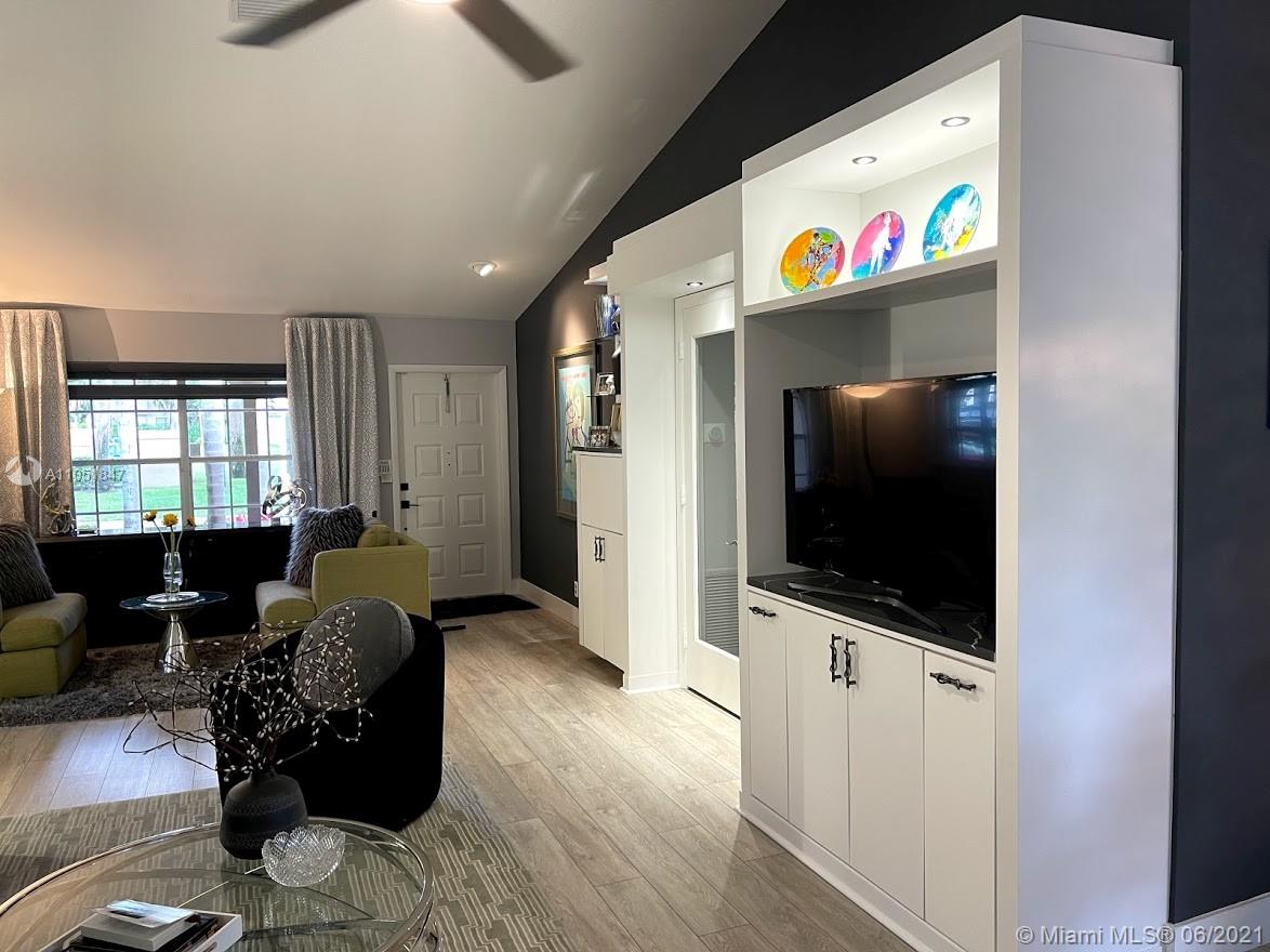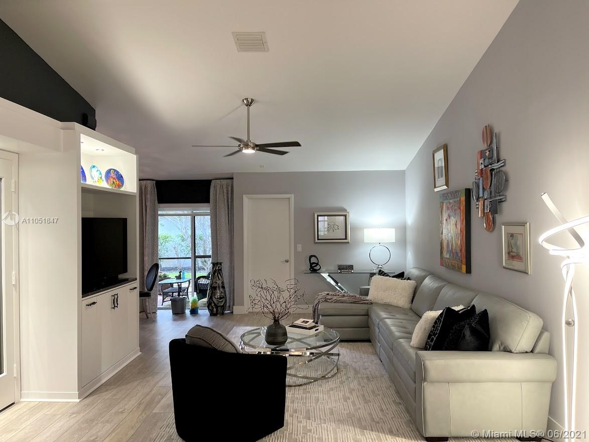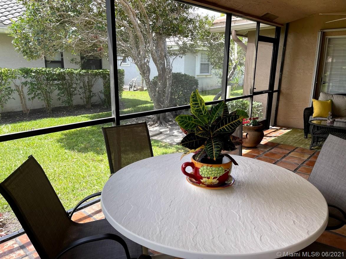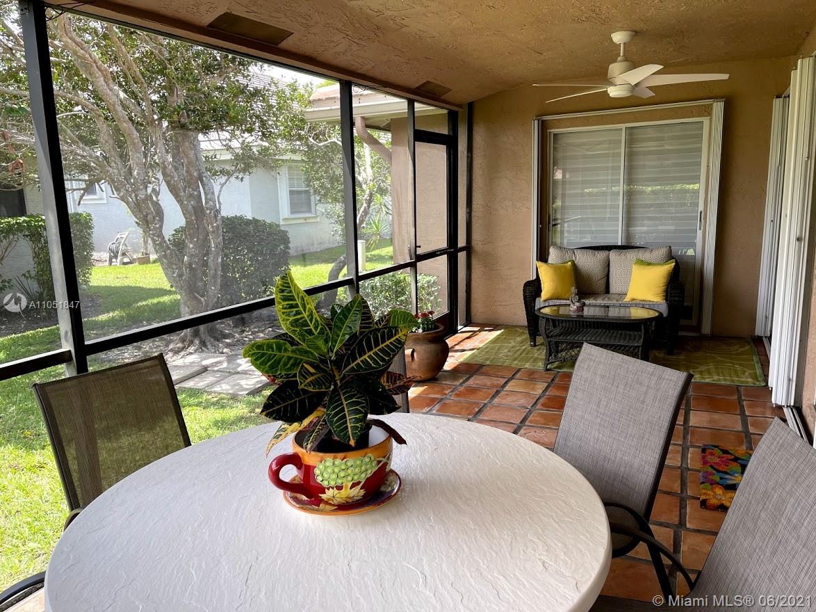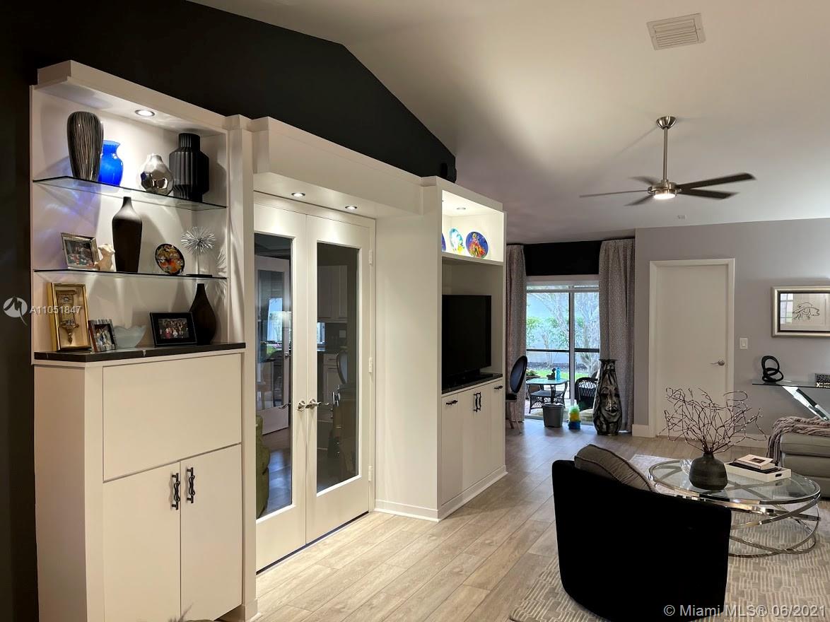 Hurry to this immaculate totally remodeled spacious split bedroom plan on great interior lot complete with accordion shutters throughout, large tiled screened patio & across from community pool. Enjoy your very own professionally decorated home in a great location complete with a community pool & lawn maintenance. This home features a split bedroom plan, vaulted ceilings, a white bright eat-in kitchen with stainless appliances & quartz counters, an interior laundry room, a spacious master suite with two custom-fitted closets & gorgeous remodeled bathrooms. Enjoy two additional spacious bedrooms & a flexible floor plan with a private office/den/playroom/dining room &, Numerous custom built-ins included in this home. The roof was replaced in 2006, energy efficient a/c in 2015. HOA $500 qtrly