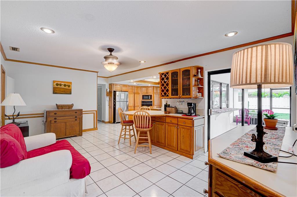 Large 5 bedroom Home on a Huge Corner canal front lot(about 13000 Sq Ft) plenty of room for pool + more! Split plan layout offers lots of privacy. Big Open Kitchen w/cooking island stove top, Built in table, great counter space and loads of windows. Super gathering place for entertaining. Most appliances 4 years or younger! Large pass thru 2 spacious Screened Patio, adjacent to outdoor cement patio. Over Sized Master Bedroom has large walk in+expansive counter space in master bath area. Guest Bath w/double sinks, new tile in tub area + cabana bath access to the outdoor patio. 5th bedrm currently used as laundry rm. Great opportunity either to expand Family Room giving up 5th bedrm or fine tune 5th bedroom moving laundry back 2 garage.Convenient to Mall + Restaurants-Best Schools