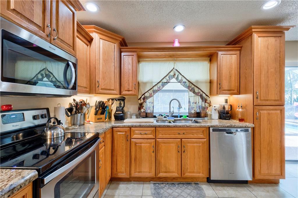 YOU WILL WANT TO SEE THIS 4 BEDROOM/ 2 BATH ON A CORNER LOT!! TILE THRU-OUT THE LIVING/FAMILY ROOM WITH VAULTED CEILINGS!! ENJOY HOLIDAYS IN THE FORMAL DINING ROOM!! UPDATED LARGE KITCHEN WITH STAINLESS STEEL APPLIANCES & GRANITE COUNTERTOPS!! 4 SLIDING DOORS TO PATIO & POOL!! THE PRIMARY BEDROOM HAS TWO WALK IN CLOSETS AND AN OVERSIZED PRIMARY BATHROOM YOU WILL LOVE!! BOTH BATHROOMS ARE CABANA STYLE, LEADING OUT TO A WELL MAINTAINED POOL!! HURRICANE SHUTTERS ON ALL DOORS AND WINDOWS!! 2 A/C'S TO KEEP YOU COOL AND A 10 YEAR OLD ROOF!! WALK TO ELEMENTARY SCHOOL & PARKS!!