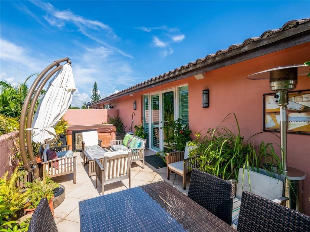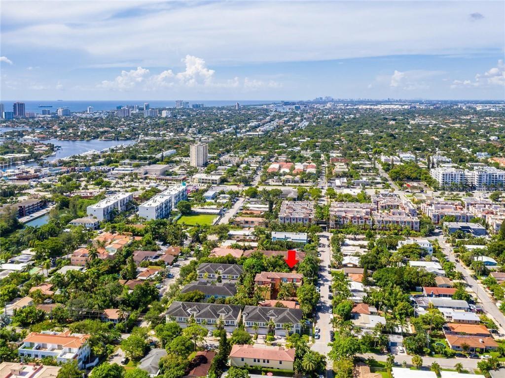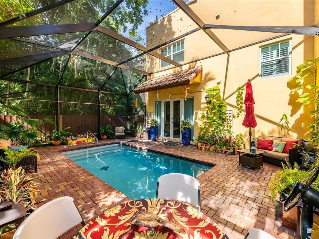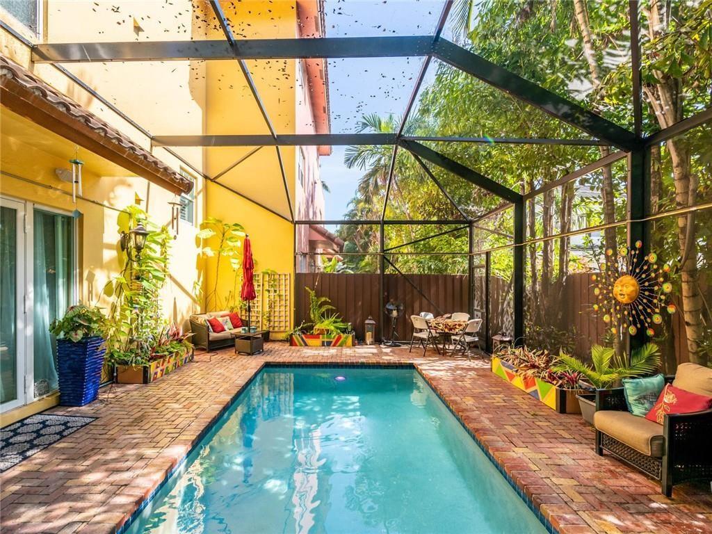 This spacious 3 bedroom 3.5 bath townhome located in the heart of Fort Lauderdale boasts an oversized 3 story open feel of a single family home with a private fenced & screened in heated salt pool. The 1st floor features an open kitchen with a custom bar overlooking living & dining room. Powder room & 2 car garage. French doors & windows for lots of natural light. All bedrooms with walk in closets are on the 2nd floor. An elevator brings you from 1st floor to 2nd. 3rd floor family room with a full bath easily converts into a 4th bedroom. Large roof top terrace with jacuzzi where you can enjoy the beautiful skylight city views of downtown. Full house diesel generator. Security cameras. Selling furnished. Close to beaches, Las Olas, restaurants & Ft Lauderdale Int'l Airport. Won't last!!