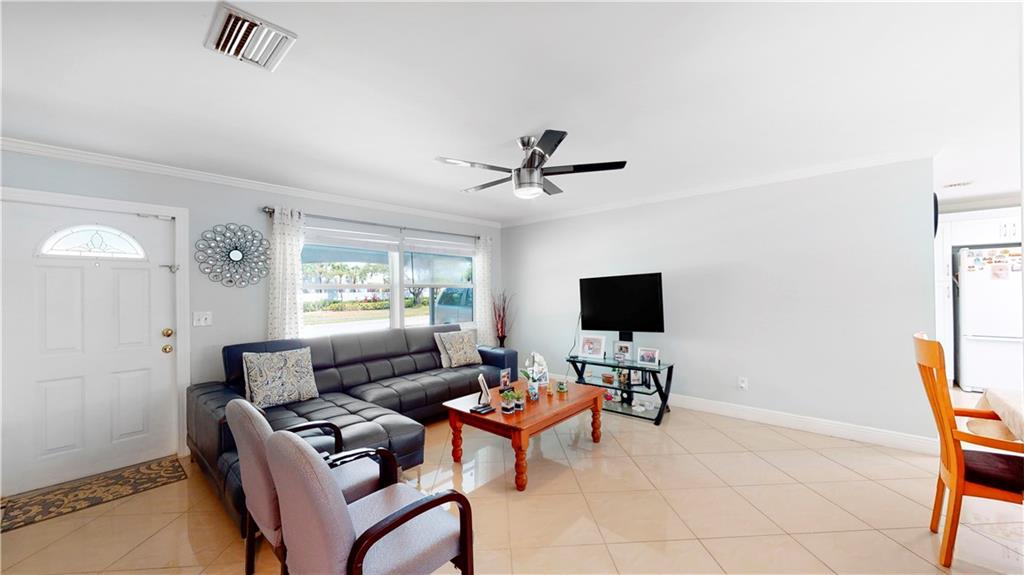Renovated 2 Bedroom 2 Bath with Large Workshop/Storage shed in fenced backyard. Tile Floors throughout the home. Beautiful White Wood Cabinets in Kitchen with Granite countertops. Washer and Dryer. New Water Heater, AC fairly New. Gated side yard gives access to backyard with plenty of storage for Boat, Trailers and/or other toys. A great East location with easy access to Federal Highway and I95. Move in Ready. Hurry this one won't last long!