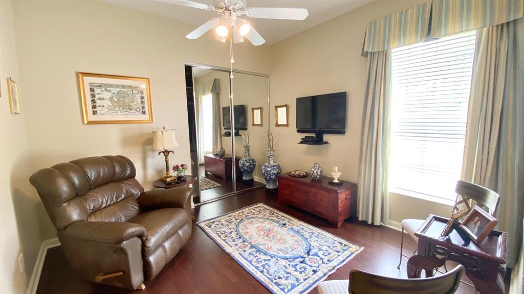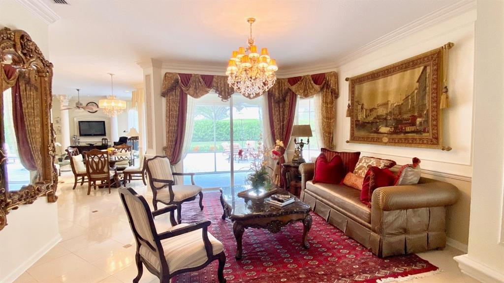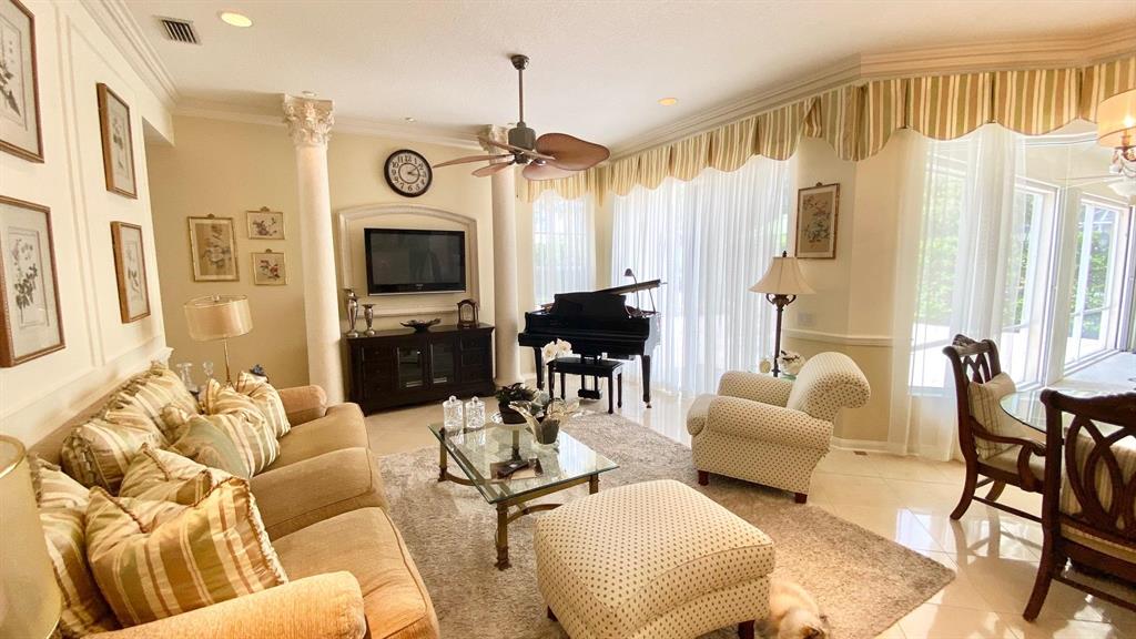This stunning Windsor model is located in a private section of the community within short walking distance of all the wonderful amenities that RiverWalk has to offer. This home is a real showcase, tiled floors on a diagonal through the main living areas, wood and laminate flooring in the bedrooms. Custom drapes/window treatments, granite counters in the kitchen and bathrooms, Extra deep crown molding, many designer touches throughout this well maintained home. The master bedroom opens to the screened lanai, has generous closet space, the master bathroom has been renovated and has a deep roman tub and large walk in shower. There is a second master suite on the opposite side of the home with private bathroom and walk in closet. The garage has custom tile-like rubber flooring and doubles