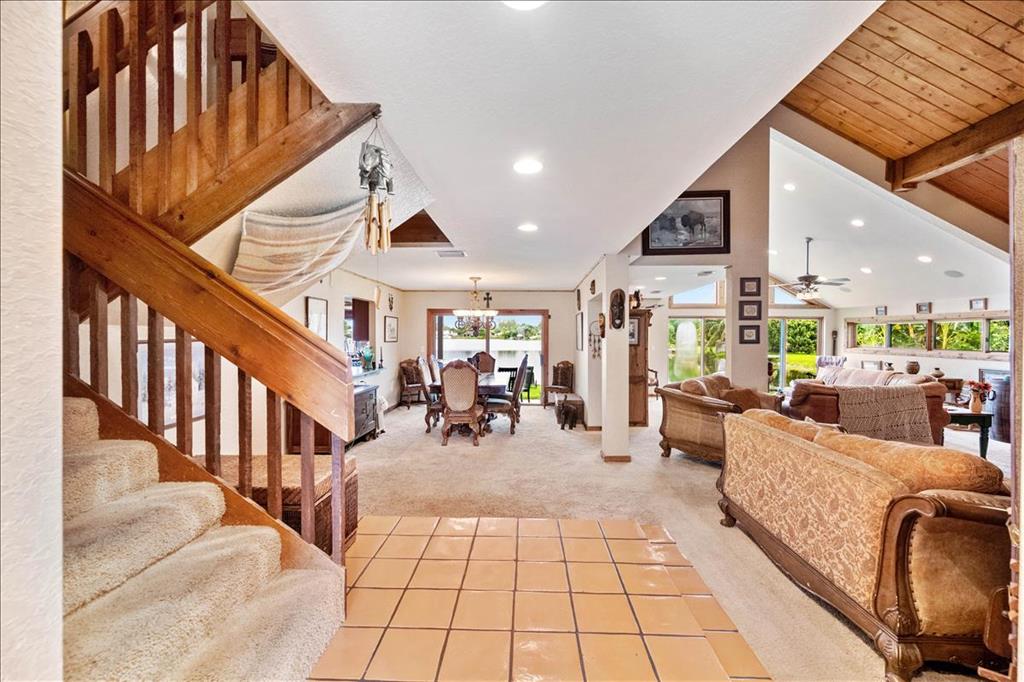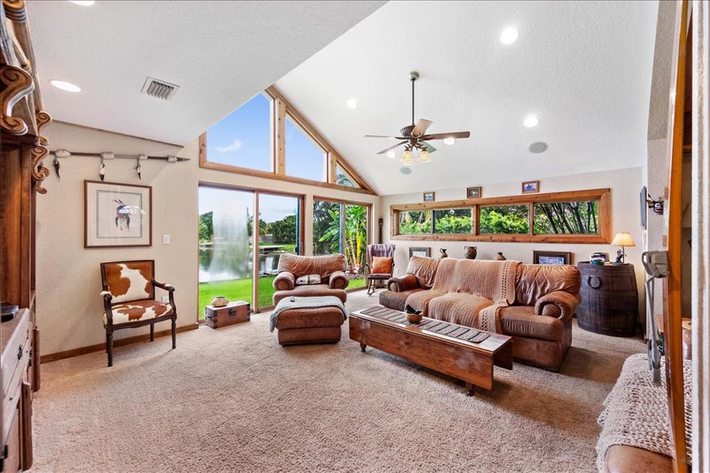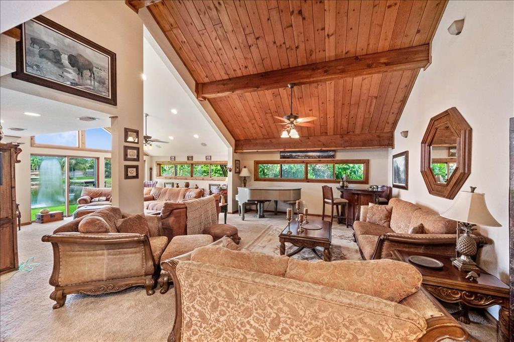 This charming 3 bedroom/3 bath plus office home features a dock and provides breathtaking panoramic views of the beautifully serene Lake Patrick. Set privately at the end of the road with its very own cul-de-sac. This home boasts an open floor plan with gorgeous wood beamed cathedral ceilings. The spacious backyard provides plenty of room for a large pool. This is a must see!