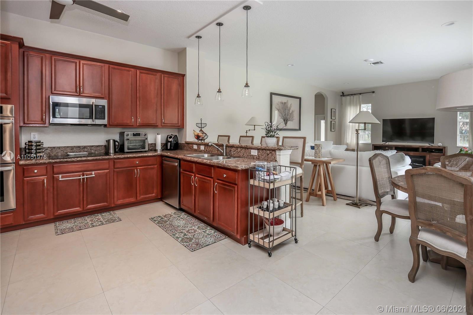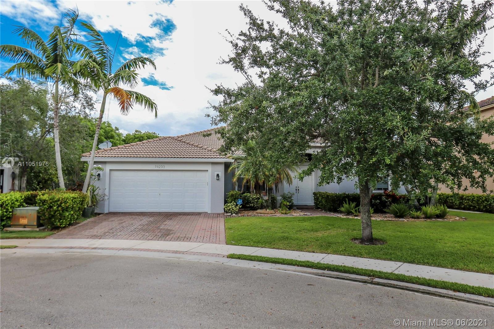 This stunting one-story, waterfront home is located in a cul-de-sac, bigger lot, and in the best part of the prestigious gated community of The Isles at Weston. Spacious 4 bedrooms and 3 full bathrooms. New ceramic tiles on main area and laminated floor in bedrooms. Bright home with high ceiling. New A/C and new water heater. Two-car garage with door you can open and close from your cel phone. Accordion shutters. Enjoy the best of Miami suburb lifestyle from its salted pool, overlooking the Lake. Excellent Schools: Manatee Bay Elementary School. Falcon Cove Middle School and Cypress Bay High School. (Tax reflects no exemption so it's lower when Homestead the house.)