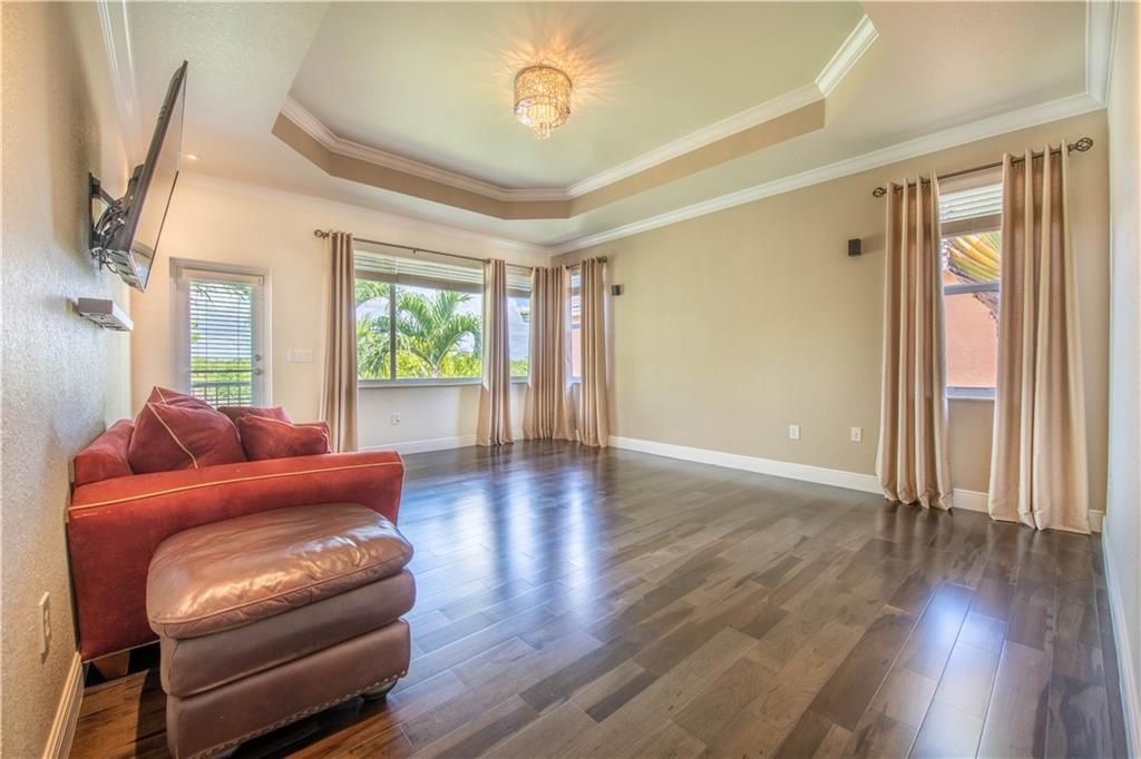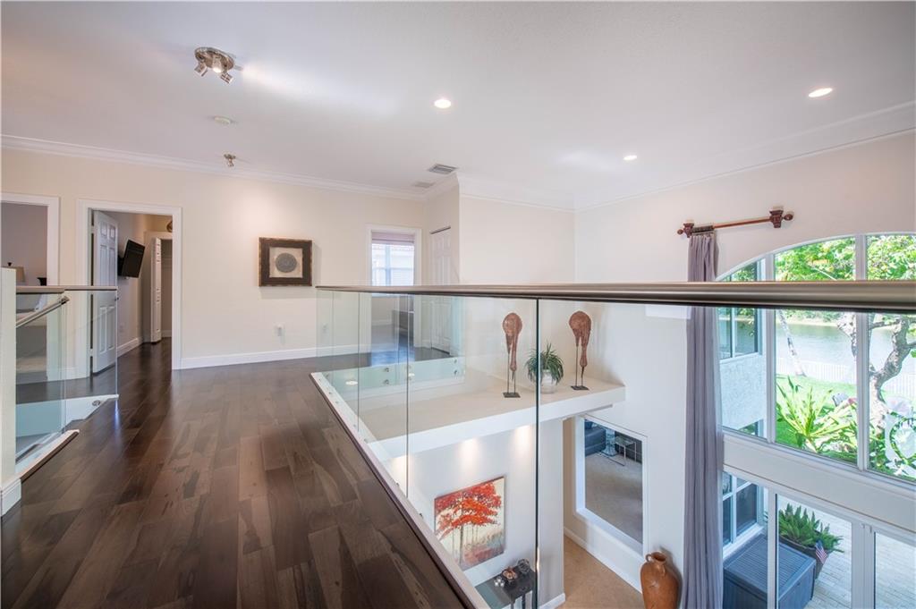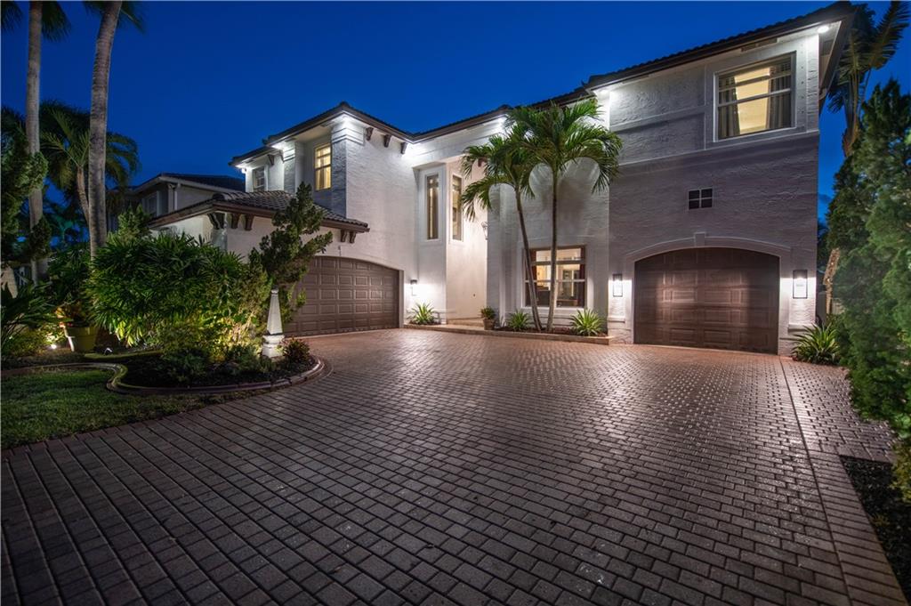 Stunning remodeled estate with modern flair. This beautiful home features 5 bed/4.5 bath/office. Third garage has been converted into another office, downstairs in-law suite, plus two offices. Freshly painted inside and outside. All bathrooms have been completely remodeled, gourmet kitchen with S.S. appliances and granite countertops. This home includes hurricane impact windows/doors, new A/C units, new water heater, glass staircase and wood floors on the second floor. Amazing backyard with travertine floors, establish tropical landscaping and gorgeous exterior lighting overlooking the tranquil water views and preserve.