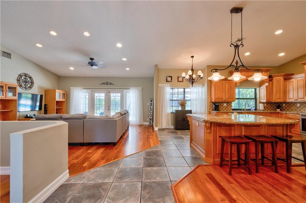 Impeccably maintained home. Upon entry you are greeted with an open concept floor plan and volume ceilings. The home is perfect for entertaining or just quality family time. This home features a Chef's Kitchen with solid wood cabinetry, stainless appliances and granite counter tops. The large center island has a custom wine rack and wine cooler. Great space for cooking or gathering with the family. The master suite features his and her walk in closets and a luxurious spa like bath. All bedrooms have great closet space and natural light. The hall guest bath has also been remodeled. French doors from the master suite and living area open to a covered outdoor living space and screened heated pool. The oversized fenced lot offers space for kids to play or dogs to roam.