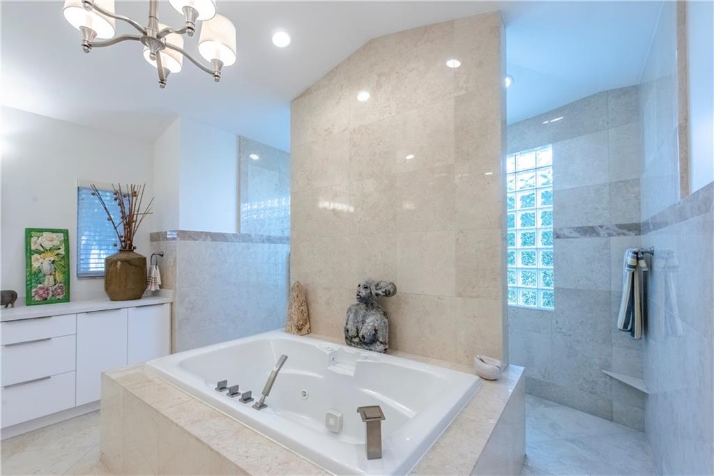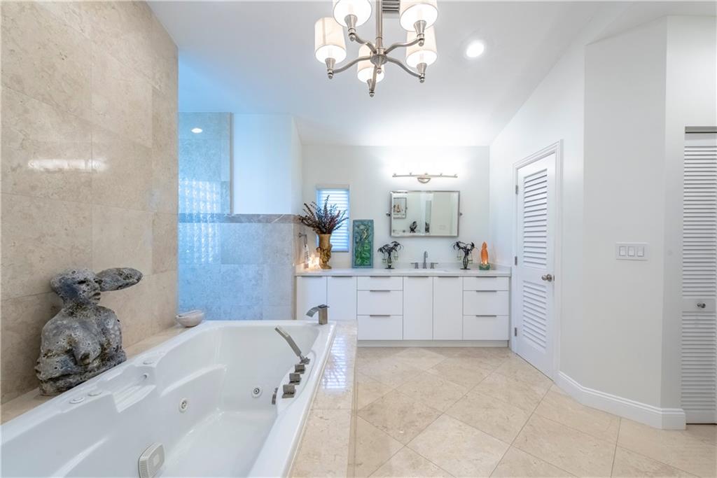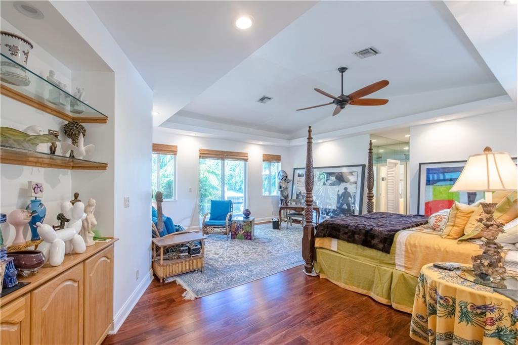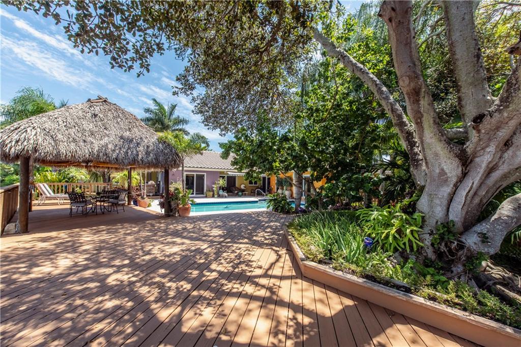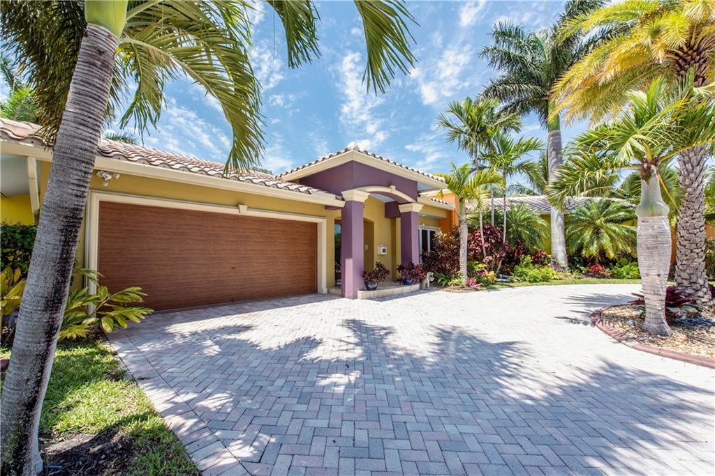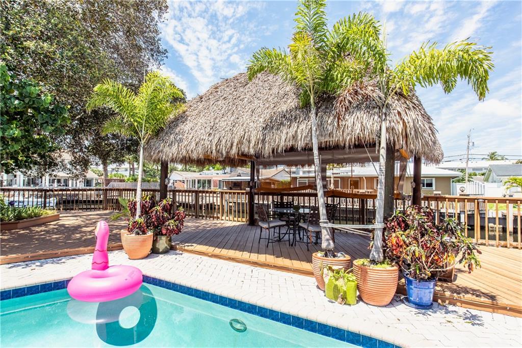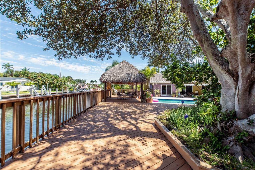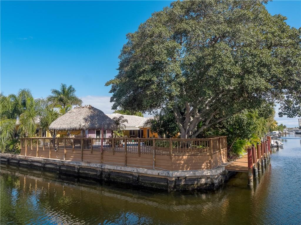 Simply Spectacular, Newly renovated Contemporary style 4 bed 3 bath waterfront pool home, Point lot with 250 ft of waterfront, 55 ft dock w/ electric & water. This home located in The Landings built at the end of a cul-de-sac , ultimate privacy. Interior features, 2 master suites w/ 1 Master suite just under 1,000 sq ft.,split bed floor plan, marble floors in living area, hard wood floors in bedrooms. Media room, laundry rm & a storage room. Exterior features mature lush landscape w/ fenced yard, expansive decking w/ Tiki Hut, sound & lighting perfect for entertaining. New Gas Genrac generator w/ a 7 yr warranty runs entire home. Impact windows & doors, custom impact front door w/ decorative glass, new garage impact door, new level 2 charing station. Mins to Intracoastal, Boater's Dream