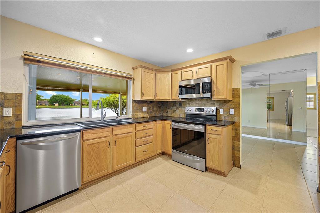 In the heart of Plantation sits this lovely and immaculate 3 bedroom 2 bath LAKEFRONT home. French doors open from family room, dining room and bedroom out to huge screened-in porch with beautiful views. Features include front screened-in porch, split bedroom floorplan, tile flooring in living areas, updated bathrooms and kitchen with Frigidaire Gallery appliances still under warranty, plantation shutters and a fantastic custom garage. Accordian shutters on every window, paver driveway, pumped water from lake for sprinklers and beautiful landscaping. No HOA fees and minutes to parks, shopping, dining and easy commute to all the major highways. Incredible opportunity – one that won’t last!