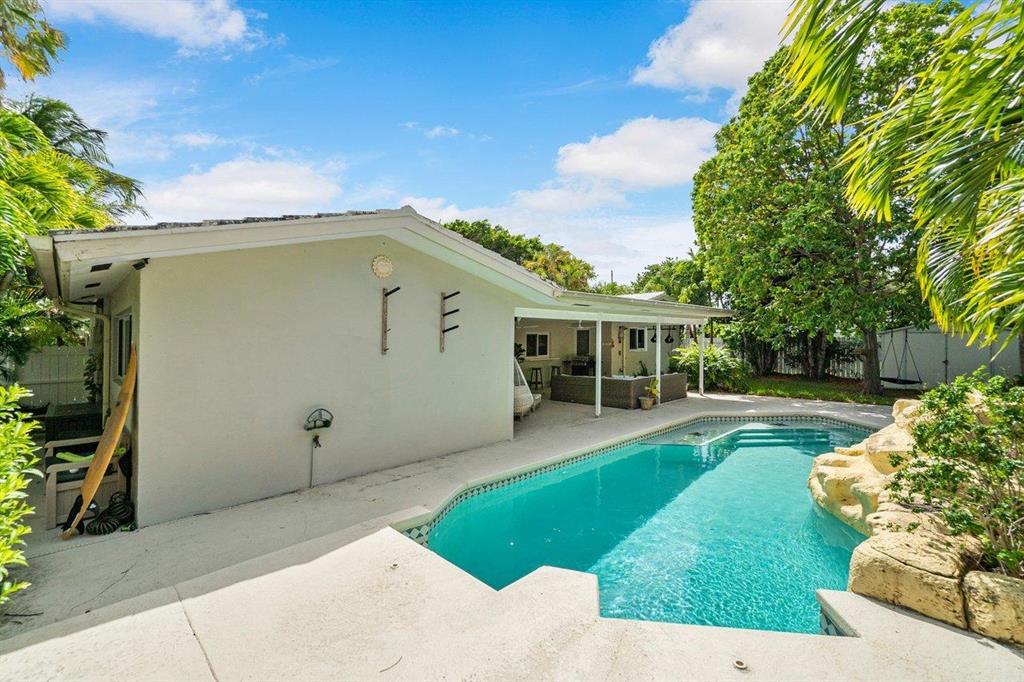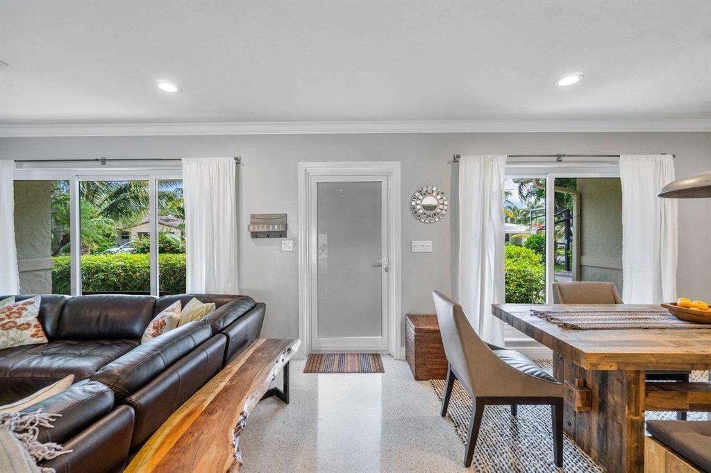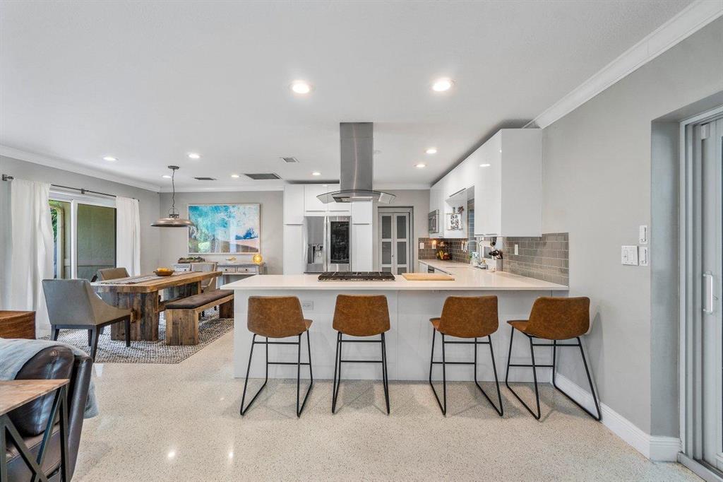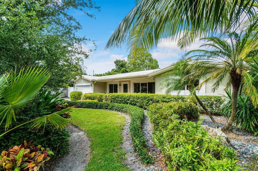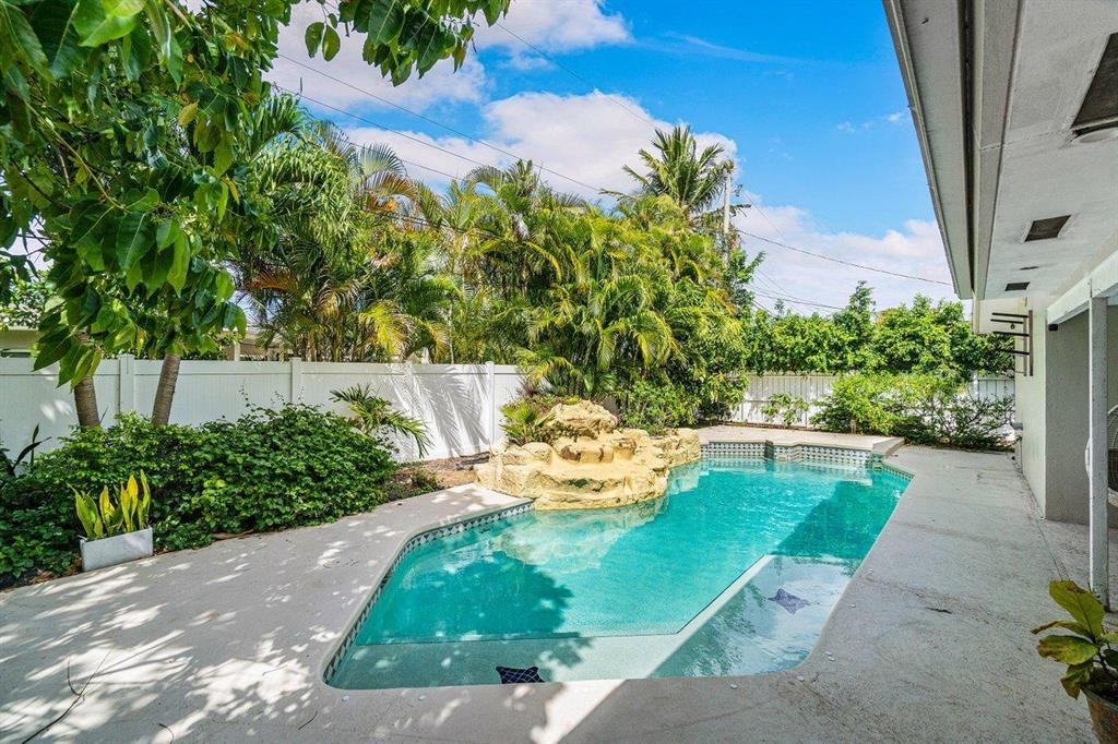 Contemporary east Pompano single family home sparkling with charm, tastefully updated with open concept design. 3 bedrooms, 2 baths, 2 car garage, private fenced tropical backyard with pool. Home is outfitted with impact glass doors and windows, new AC (august 2020), gas stove and gas tankless water heater, crown molding. No HOA. Don't miss it!