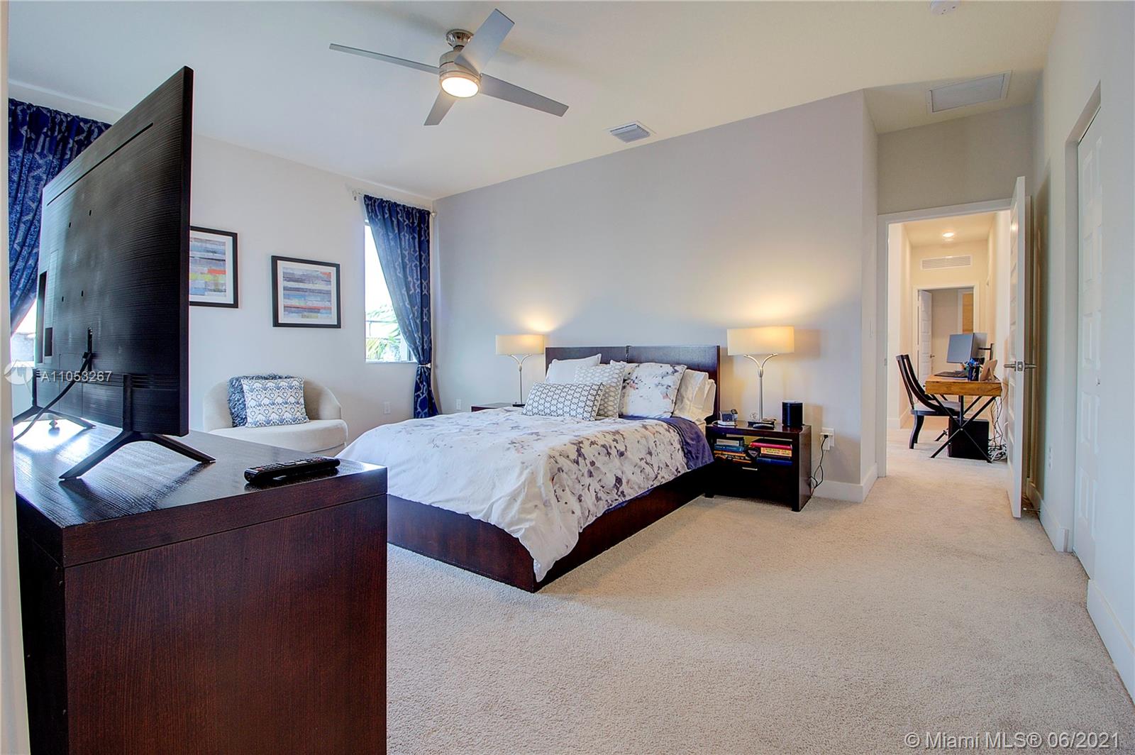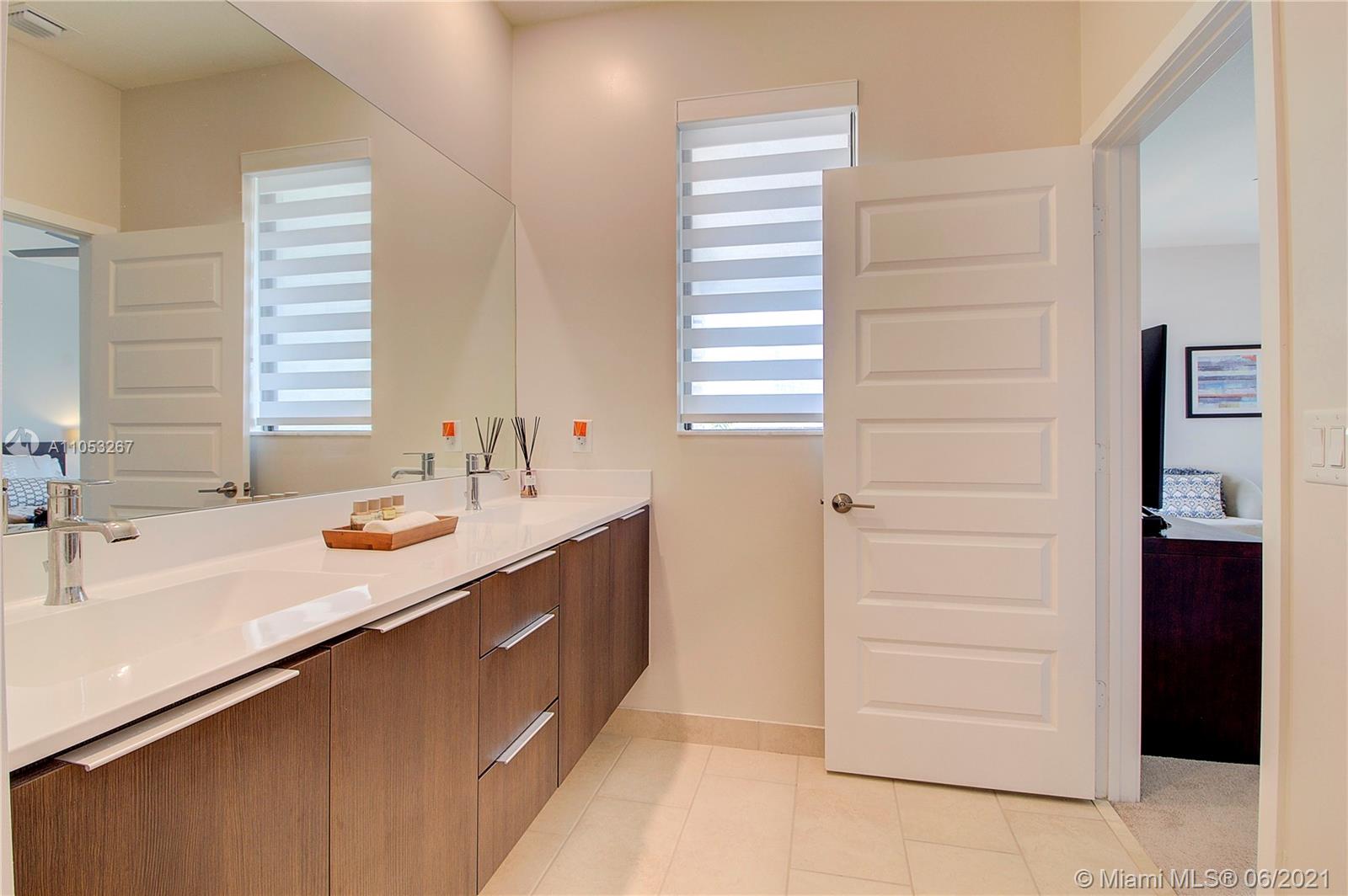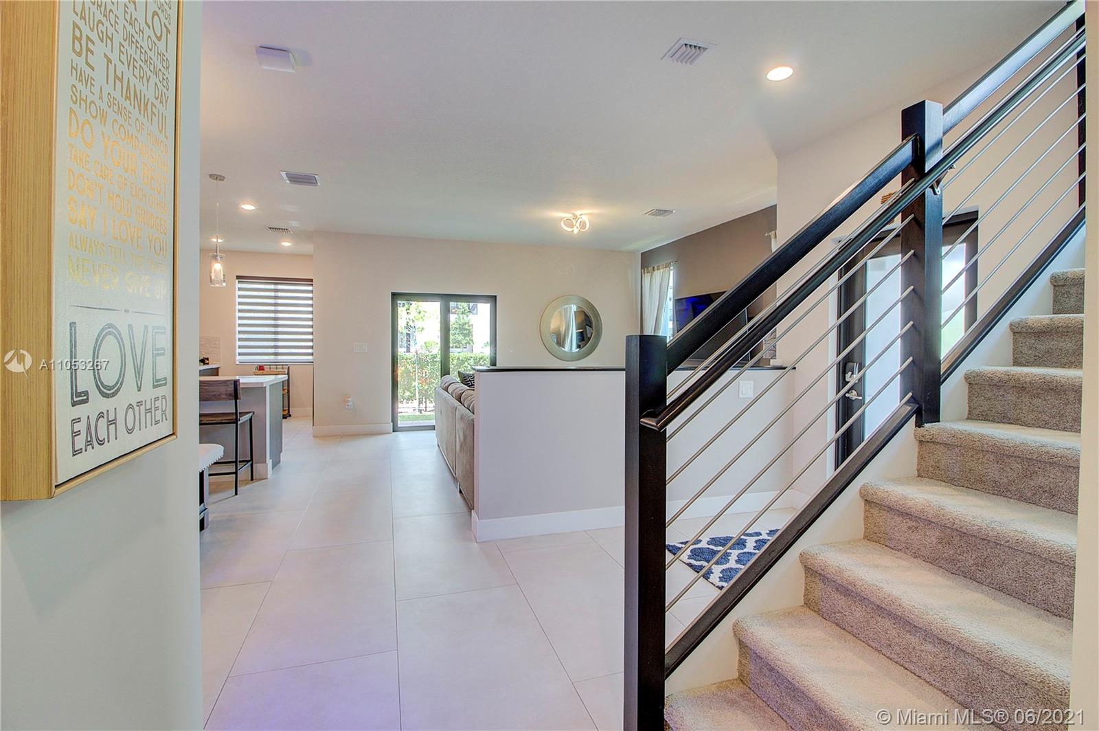 Luxurious 3 Br, 3 1/2 baths.Premium Corner lot 2 car garage in Downtown Doral , Smart home, Nest security system, Italian Porcelain (48"x24")-first floor, carpet 2nd floor, beautiful light fixtures, Ceiling fans in brms, Frosted glass impact front door, Stainless steel & wood stair railings, High end window treatments ( Bandalux) , Impact windows (PGT) Garage storage bins, Stainless steel appliances , Quartz countertops, Porcelanosa kitchen tile backsplash, Wall TV mounts included, 2nd floor loft, Laundry room, Large 2nd floor balcony, great street views, Home Warranty Included! Beautiful landscaping, Privacy fence, Covered porch, Walk to shopping/Restaurants, near City Place & expressways (Palmetto & Turnpike) A+ rated schools! Clubhouse/ Resort style Pool/Parks/Fitness center.