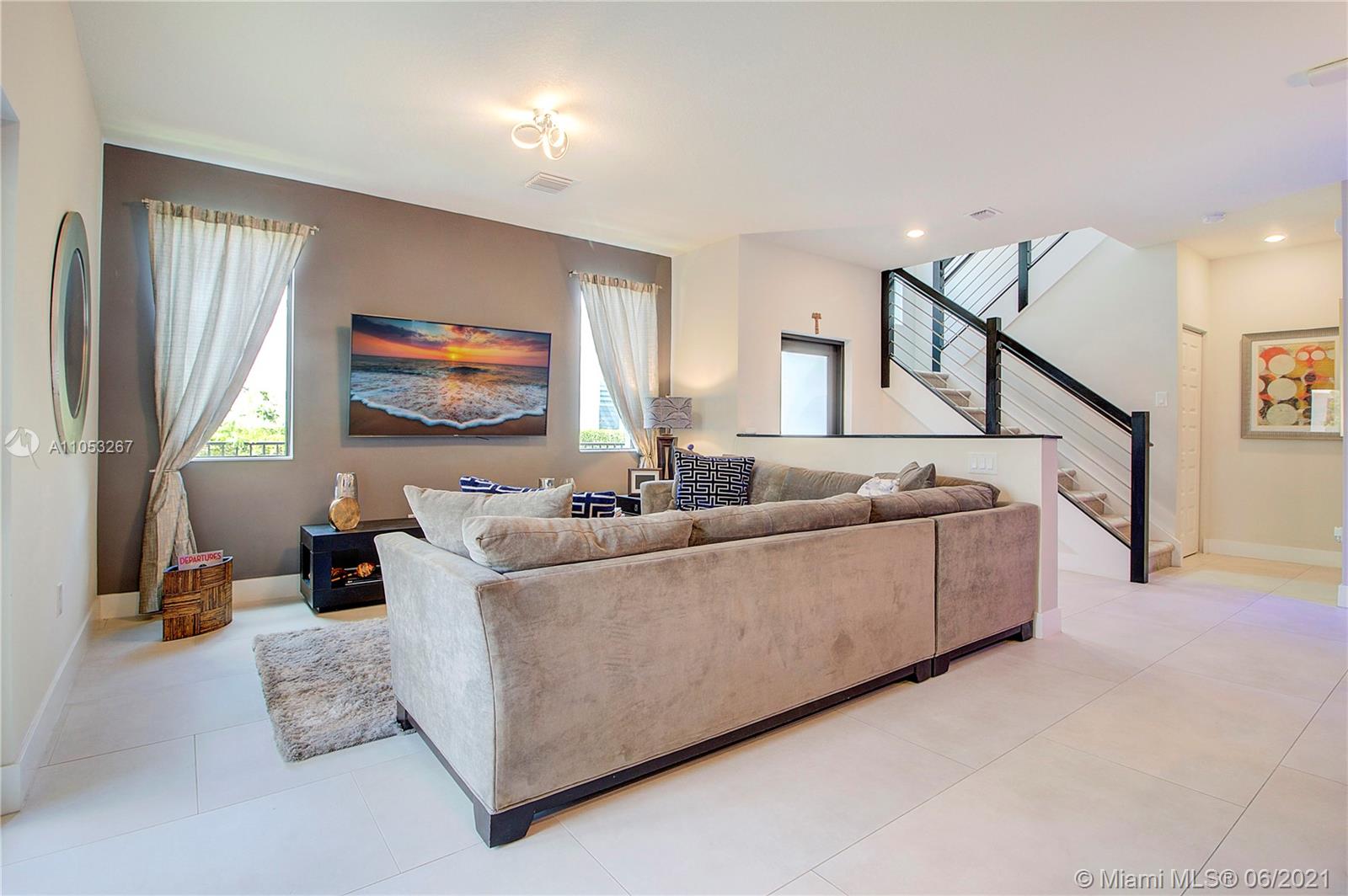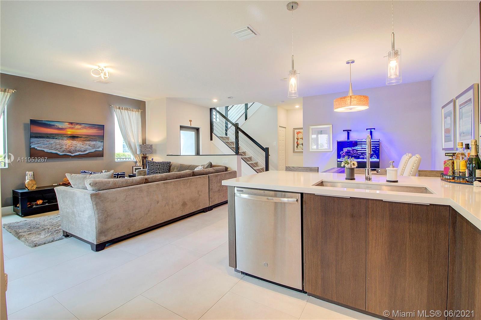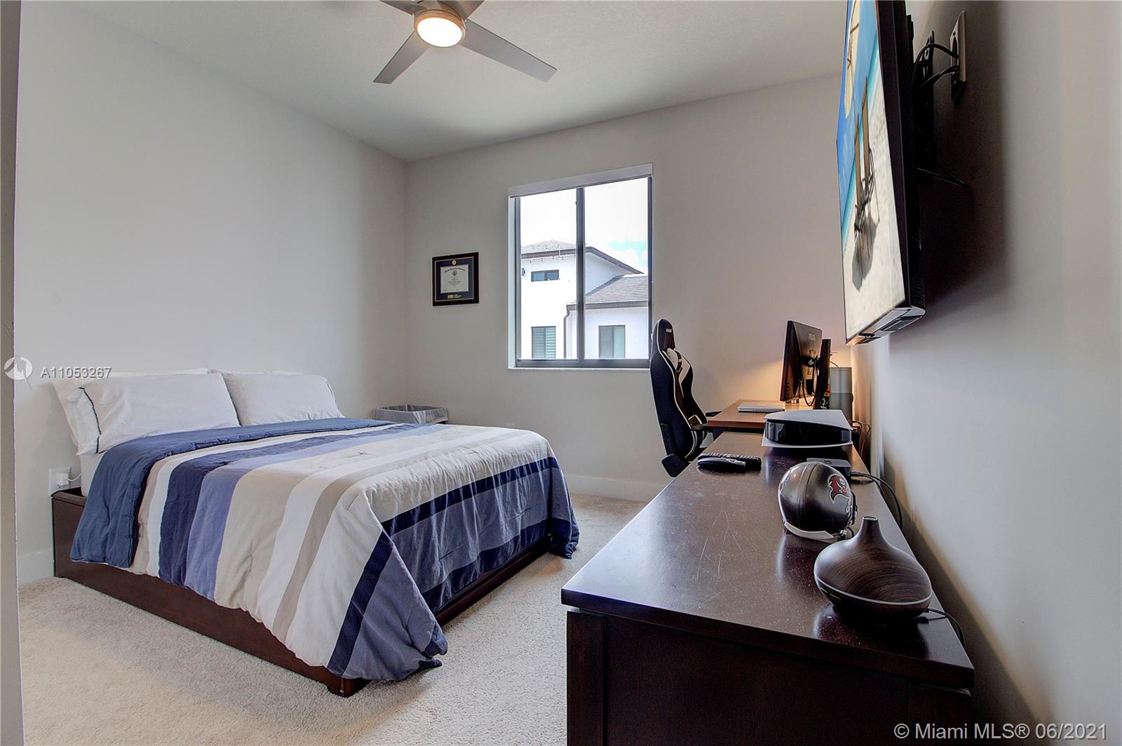 Luxurious 3 Br, 3 1/2 baths.Premium Corner lot 2 car garage in Downtown Doral , Smart home, Nest security system, Italian Porcelain (48"x24")-first floor, carpet 2nd floor, beautiful light fixtures, Ceiling fans in brms, Frosted glass impact front door, Stainless steel & wood stair railings, High end window treatments ( Bandalux) , Impact windows (PGT) Garage storage bins, Stainless steel appliances , Quartz countertops, Porcelanosa kitchen tile backsplash, Wall TV mounts included, 2nd floor loft, Laundry room, Large 2nd floor balcony, great street views, Home Warranty Included! Beautiful landscaping, Privacy fence, Covered porch, Walk to shopping/Restaurants, near City Place & expressways (Palmetto & Turnpike) A+ rated schools! Clubhouse/ Resort style Pool/Parks/Fitness center.