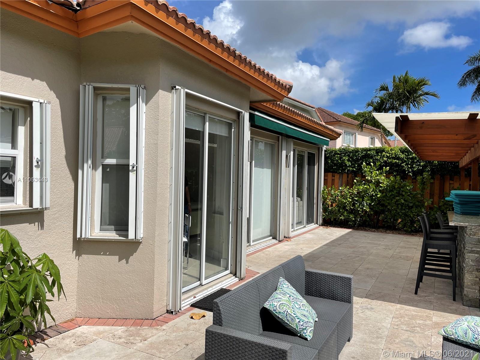 beautifully remodeled single story home in the exclusive Doral Isles, this home consists of 4 bedrooms 2.5 bathrooms porcelain floors, remodeled modern bathrooms, and a beautiful patio with a built in pergola and travertine floors. Dont miss out on this opportunity.