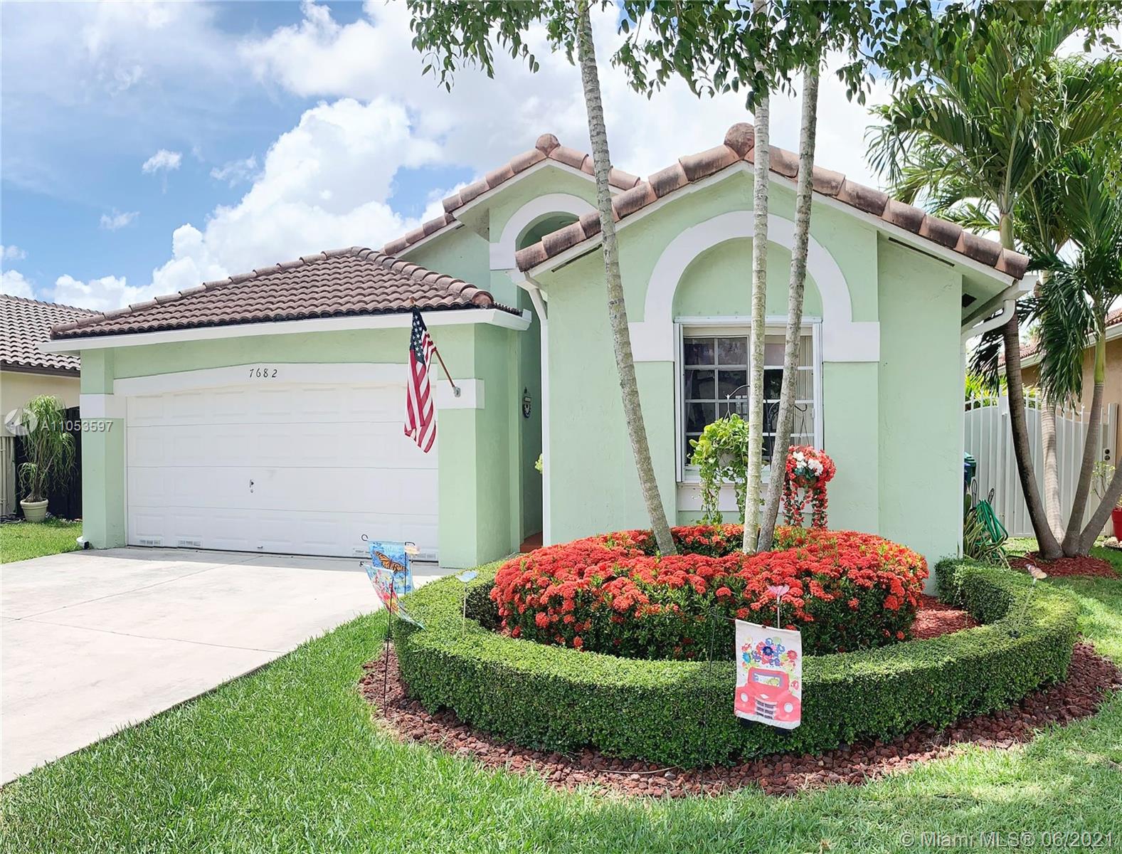 Pride of ownership at its finest. One story 3/2 gem with a two car garage in move in condition. Custom built kitchen with deep cabinets & pull out drawers. Brand new energy efficient A/C unit. split floor plan, large walk in closet, storm shutters. Beautiful covered patio with a butterfly/bird garden. Low HOA $80.00 per month . Prime location between Miami Lakes and PSN. Excellent school district and just minutes from I75 and palmetto expressway.