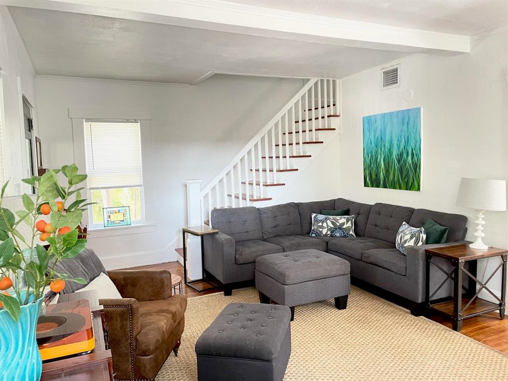 This updated 1920's American Foursquare home in the highly sought after historic neighborhood of Grandview Heights won't last long! The first level of this home's efficient floor plan includes the living room and dining room, kitchen (with walk-in pantry), 3rd bedroom (currently used as an office), mudroom with loads of storage and a bathroom (w/ shower), perfectly located for changing after a dip in the lagoon-like pool. The second level features the master bedroom with adjacent sitting room, currently used as an expansive closet/home office. This room also makes for the perfect nursery. Across the hall from the master suite is the 2nd bedroom with a large closet, as well as a full bathroom featuring the original claw foot tub.Landscaping includes mature palms, xeriscaping...