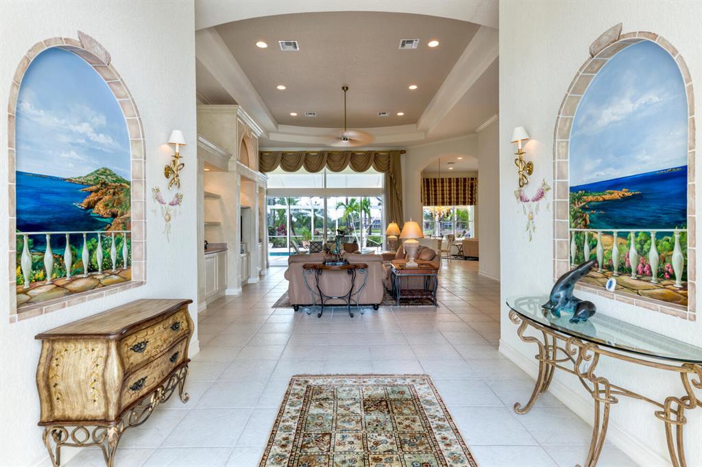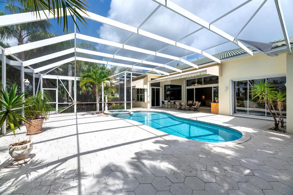 Sought after Ibis Isle on private cul-de-sac! 3Bd+Den/4BA/2.5 pool home on the golf course. Incredible water views from the front, golf and water in the back! All day sun Southern exposure. Expanded lanai, fully screened pool, spa and patio. Light and bright! Soaring ceilings. Tile in all living areas. Pool recently resurfaced. See Matterport video!