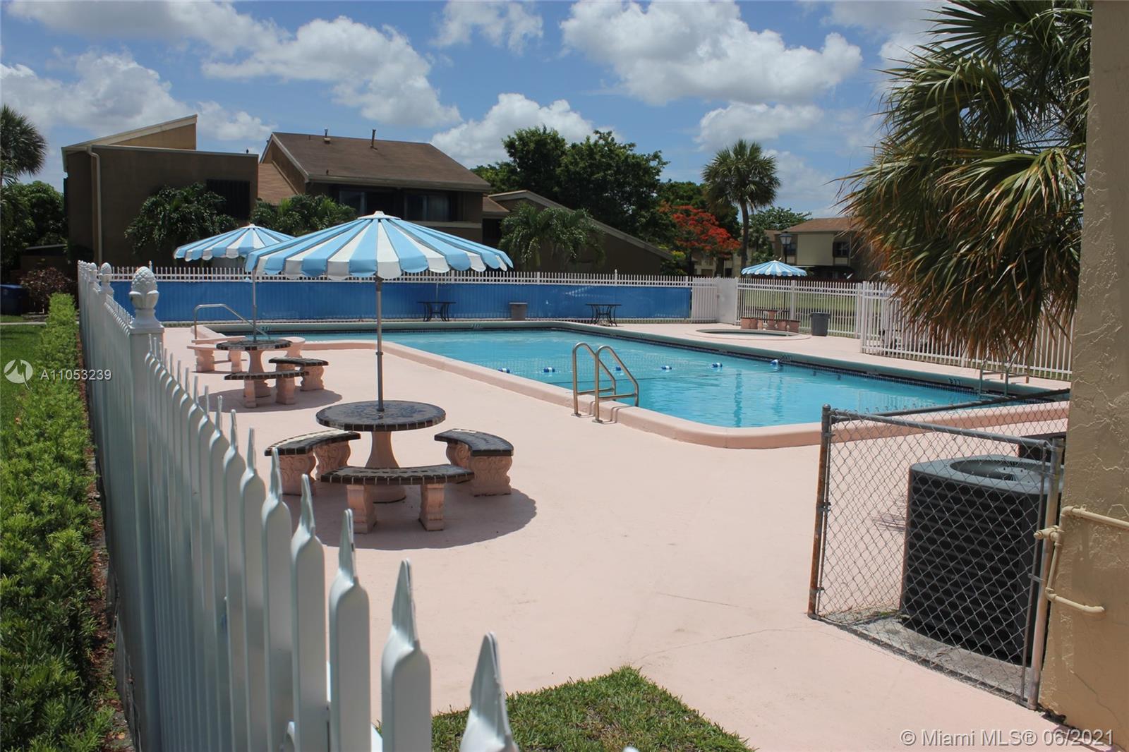 Spacious two story 2 Bedroom/1.5 Bathroom townhouse with enormous 1 car garage and assigned parking space right in front. Corner unit with fenced back patio, all tile floors, kitchen with breakfast bar, updated bathrooms, large master bedroom with walk-in closet, washer and dryer. Next to Tennis court. Schools, restaurants, shopping and Seminole Hard Rock nearby. Maintenance fee includes insurance, roof, pool, tennis court, playground, community lake and common areas. Very easy access to highways like the Turnpike, 826, I-95, I-75. Will not last!