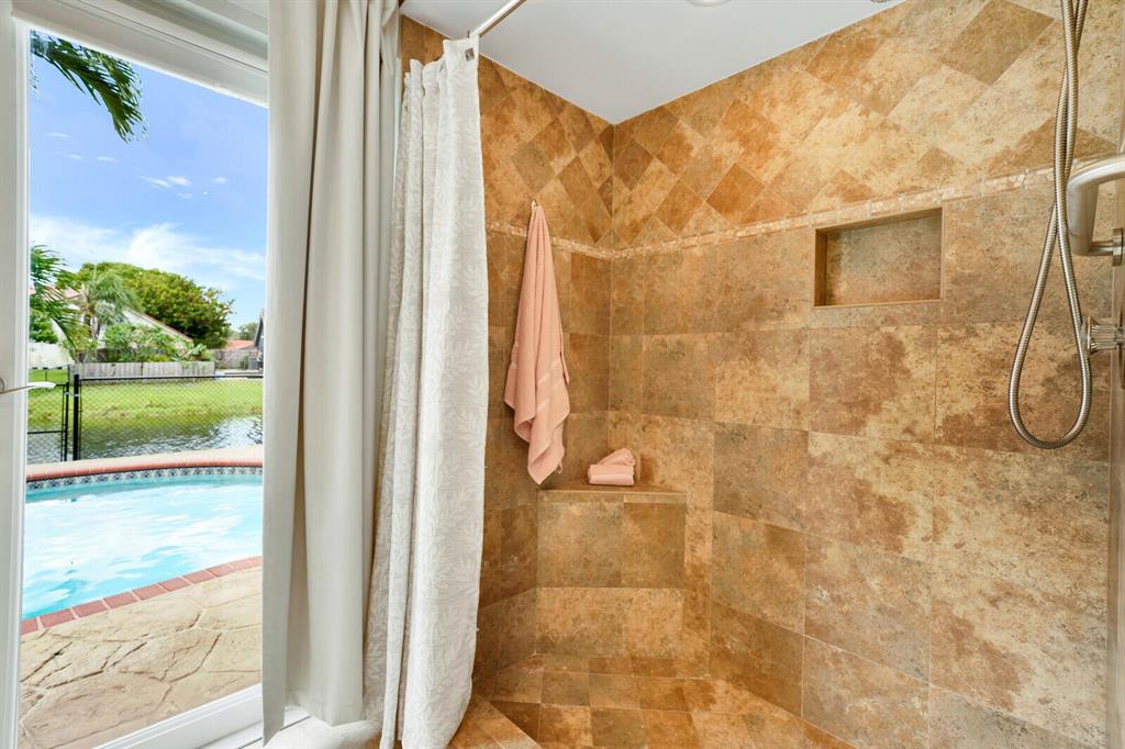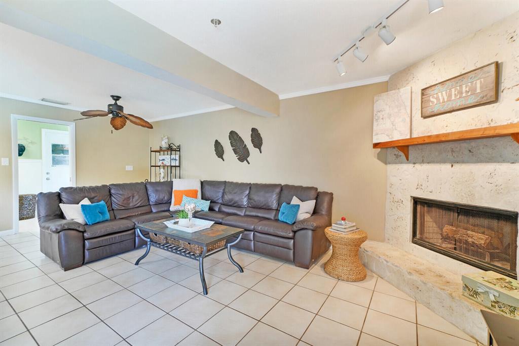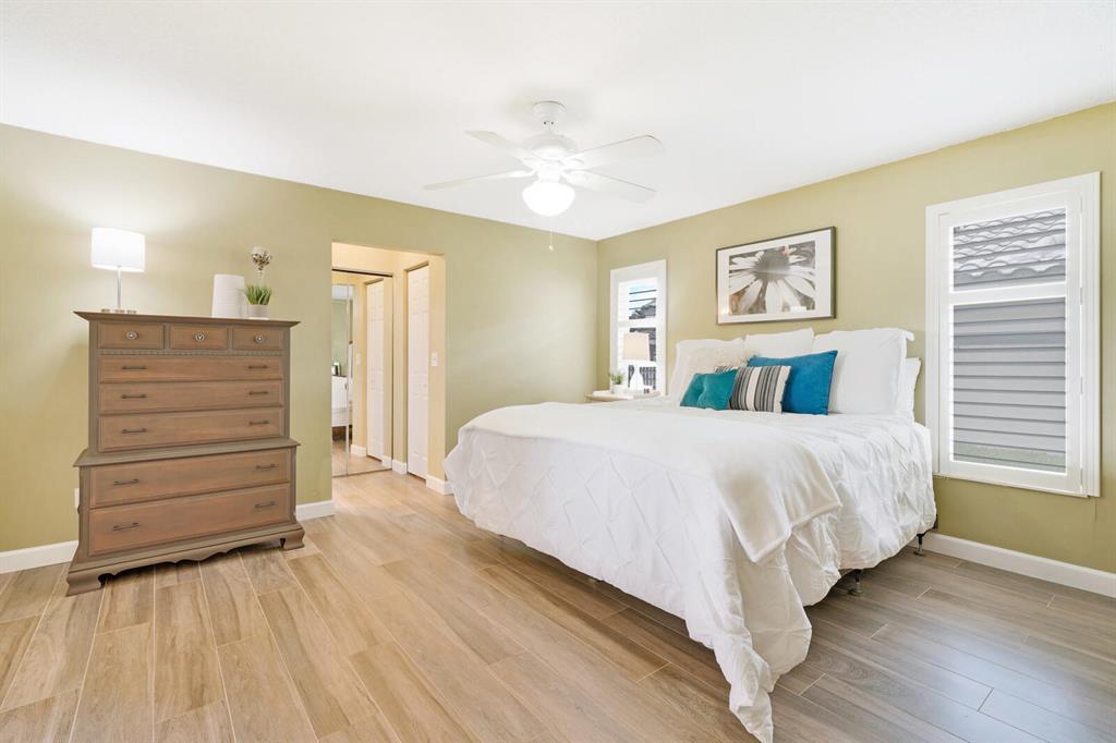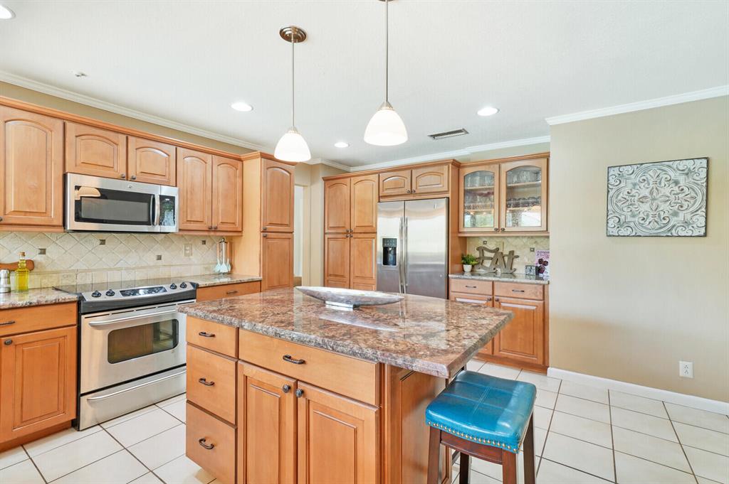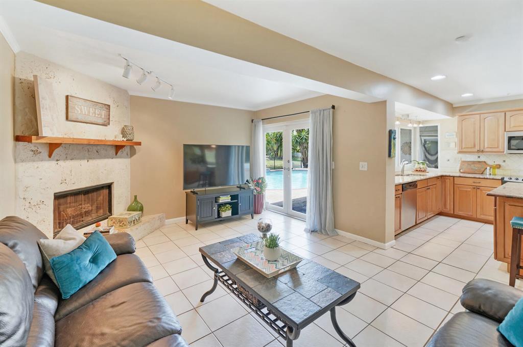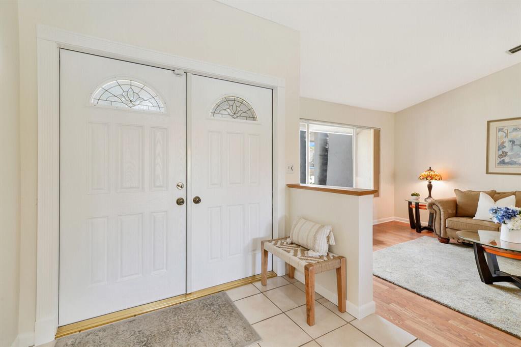 Do you desire and covet a spacious home with magnificent lake views and an entertainer's backyard? Supremely located in a highly sought-after community, this 3BR/2BA, 2,466sqft property provides a tranquil atmosphere of sheer natural beauty and daily comfort. Nestled on a tropically landscaped 8,625sqft lot, the Mediterranean inspired home magnetizes attention with exterior stonework, freshly and richly painted double crimson front doors, and contemporary architectural elements including newer impact windows. Step inside the gorgeous one-story abode to find soaring cathedral ceilings, an openly flowing floorplan, faux wood ceramic tile flooring, crown molding, a flood of scintillating natural light, and an enormous living room and dining area.
