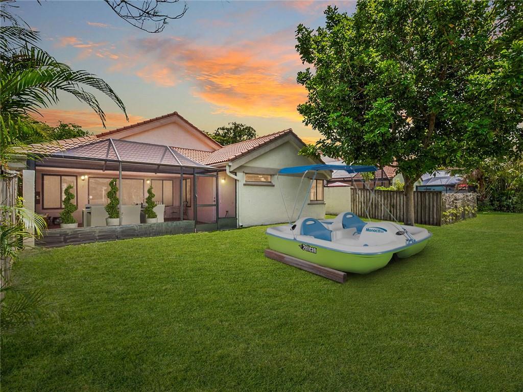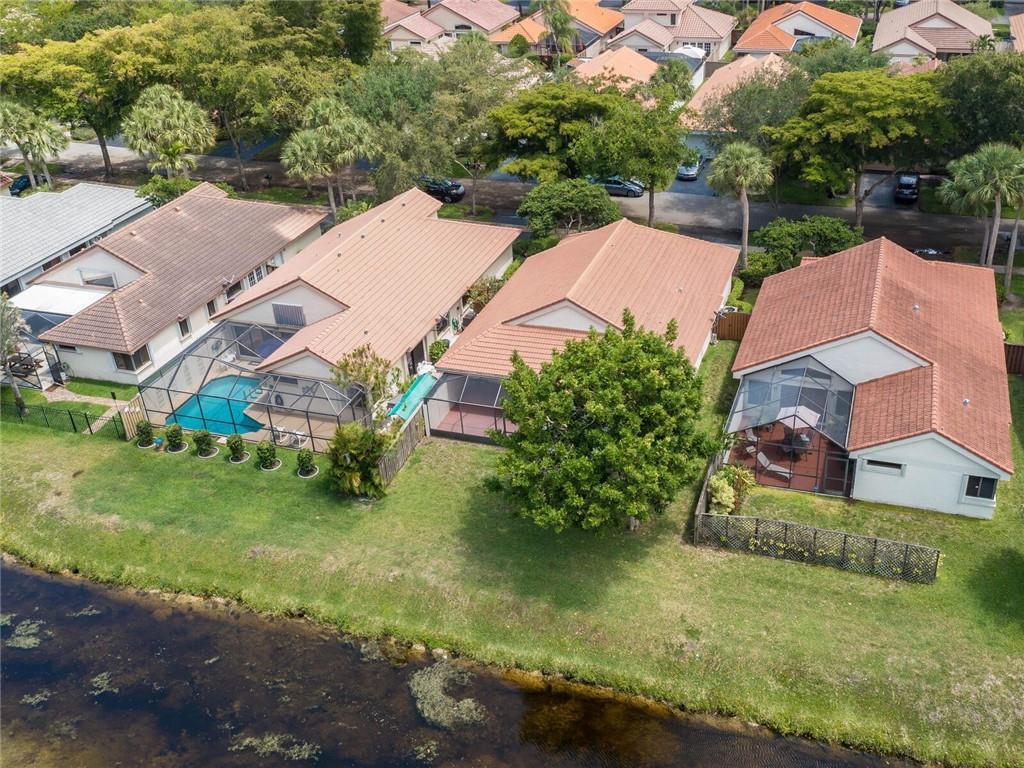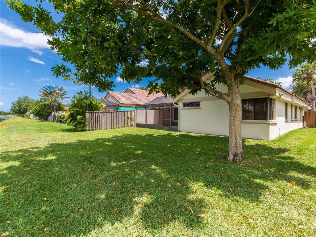 Popular Cross Creek at Jacaranda. Tucked away on the canal at North end of the community on shady tree-lined street. New S-Tile Roof 2008. Granite kitchen c-tops & neutral cabinets w/convenient pullout drawers. Huge kitchen Pantry. Welcoming Foyer looks thru the spacious Living Room out to the waterfront backyard. Dining Room plus Eat-In Kitchen. You get two real walk-in closets in the Owners Suite. Vaulted ceilings. Great yard on a peaceful canal. Panel storm shutters & reinforced garage door. Room to add a pool. Big 400 sq ft backyard screened patio; half is under the roof. The backyard is privacy fenced on 2 sides. Full size 2-car garage. The Property Sketch on BCPA.net reports Liv Area under A/C as 1731 sf and total area under the roof as 2414 sf. Lawn service included in HOA.