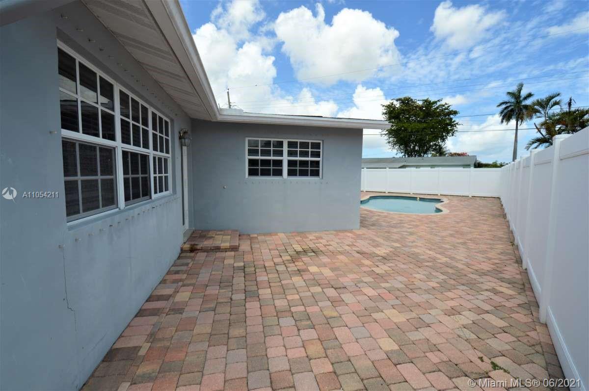Updated 3 Bed 1 Bath Pool Home••INTERIOR FEATURES: Terrazzo/Concrete Floors Throughout•Stainless Steel Appliances•Country Maple Cabinets•Tile Backsplash•Updated Bath w/Tile•Interior Laundry•Can Lighting•Newer AC Syatem•Living/Dining Combination•Recent Paint•New Water Heater••EXTERIOR FEATURES: New PVC Fencing•New Well for Sprinkler System•HUGE Brick Paver Pool Patio•New Sprinkler System•New Pool Equipment•Gutters•HUGE HUGE Yard•Storage Shed•Storm Panels (Some Impact Glass)•Carport w/Attached Storage Shed•