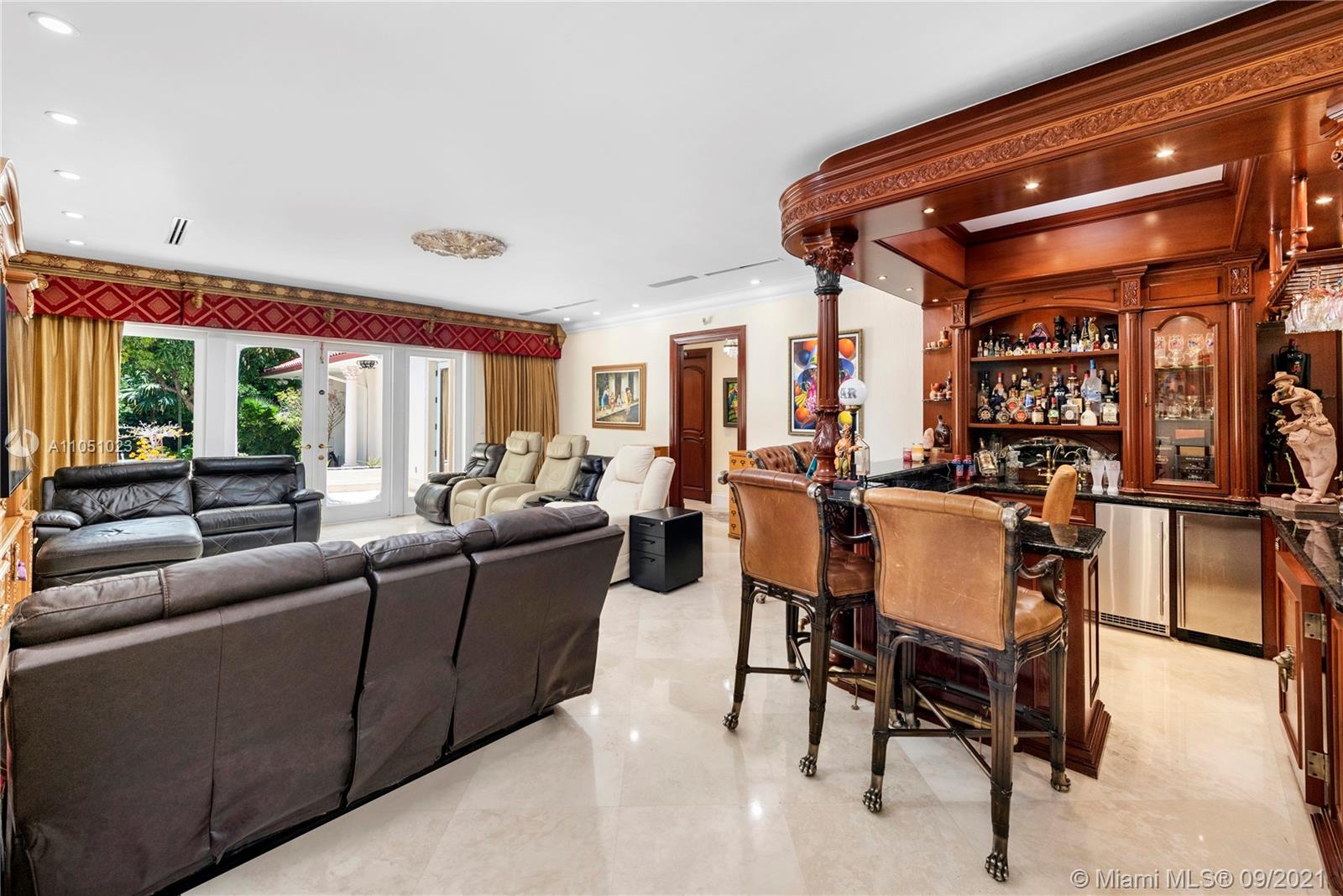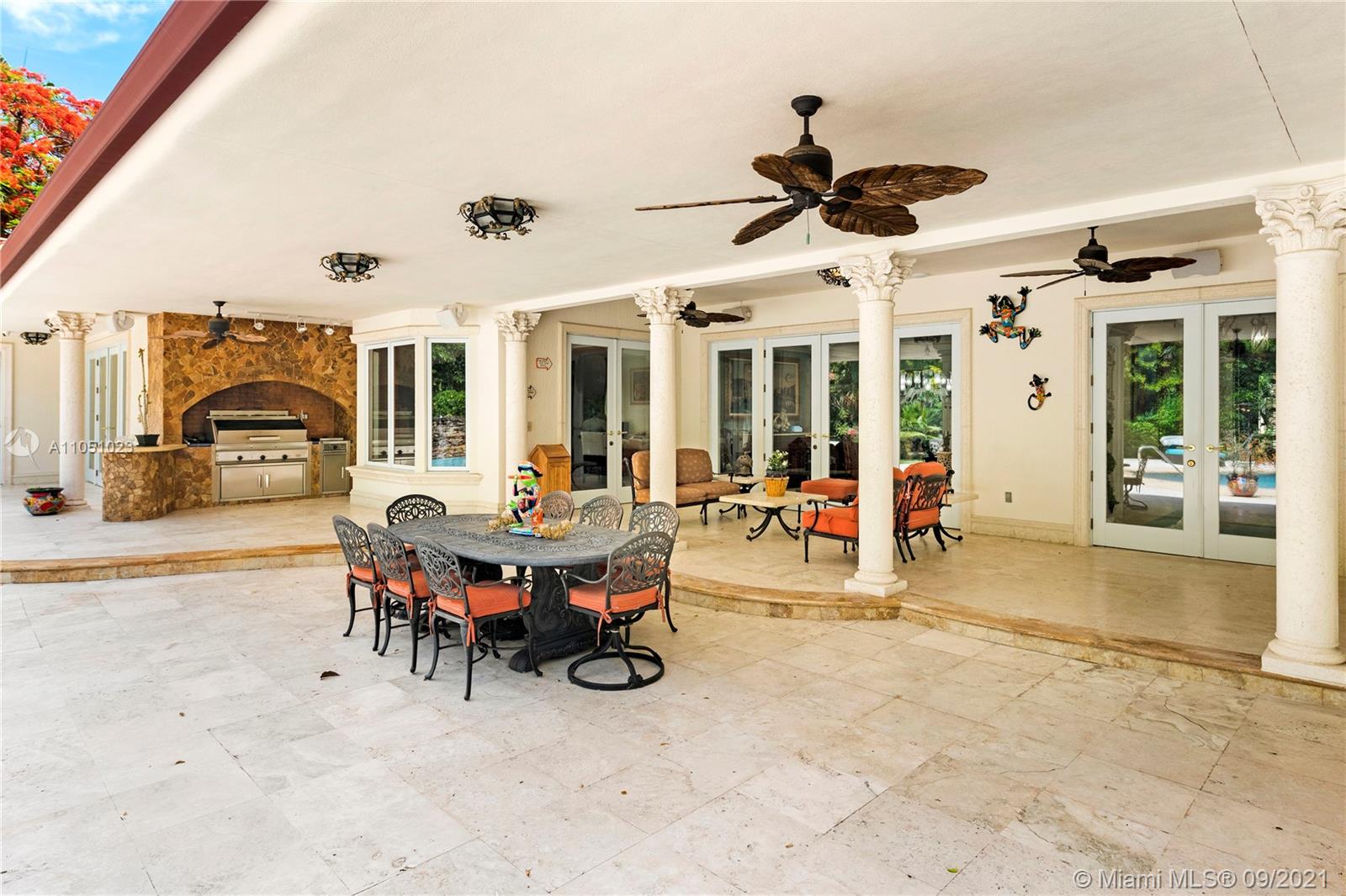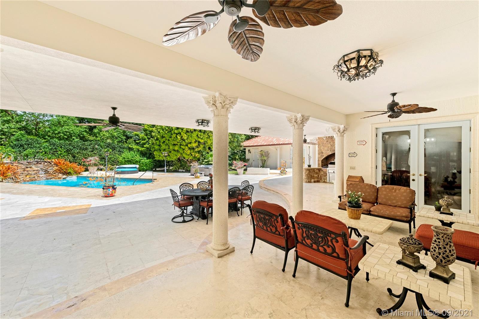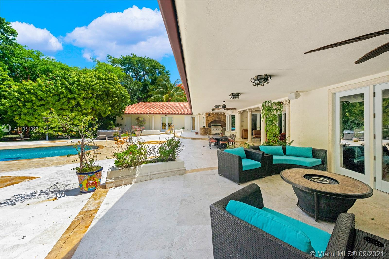 Live in Coral Gables next to the beach! Villa Ventura is a beautiful newer custom built estate sitting on a 1.51 acre lot full of fruit trees, exotic palms and majestic oaks trees directly opposite Matheson Hammocks Park. Beautiful state of the art gourmet style Chef’s kitchen w/cooking island, two dishwashers, steamer, large electric cook top, food warmer, large deep fryer, BBQ and grill, two ovens, microwave, Miele coffee maker, large Subzero double door freezer and refrigerator and wine storage. All bedrooms are en-suites with custom walk-in closets. Perfect for entertaining and equipped with surround sound, Lutron switches, outdoor covered terraces, a large saltwater pool with waterfall and a fully equipped outdoor stove/BBQ area. Impact windows, new roof and generator for Kitchen/1AC