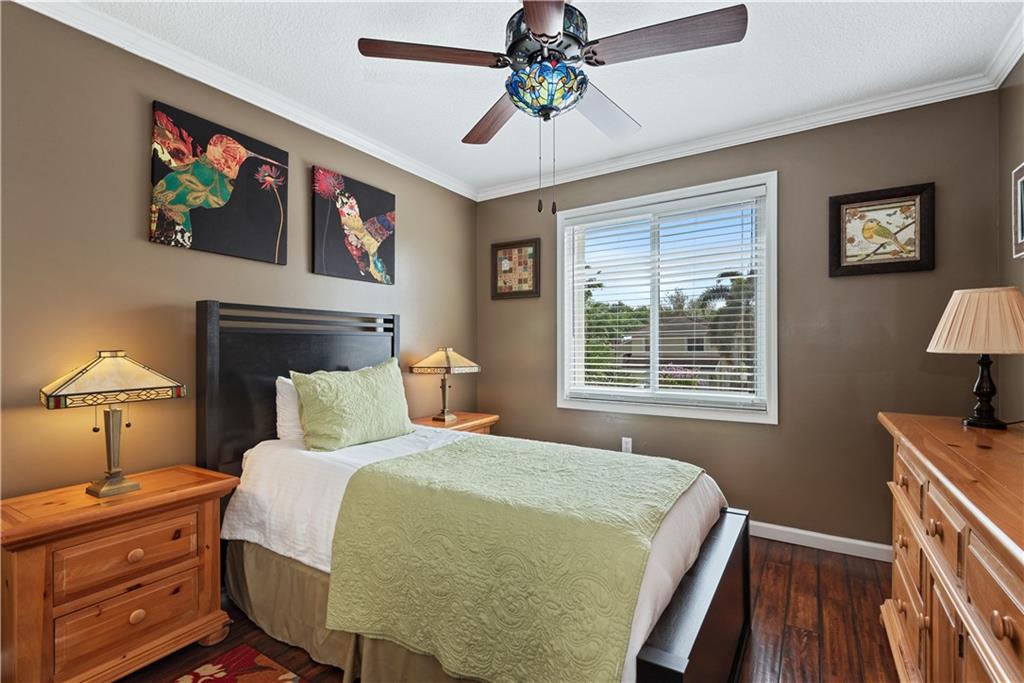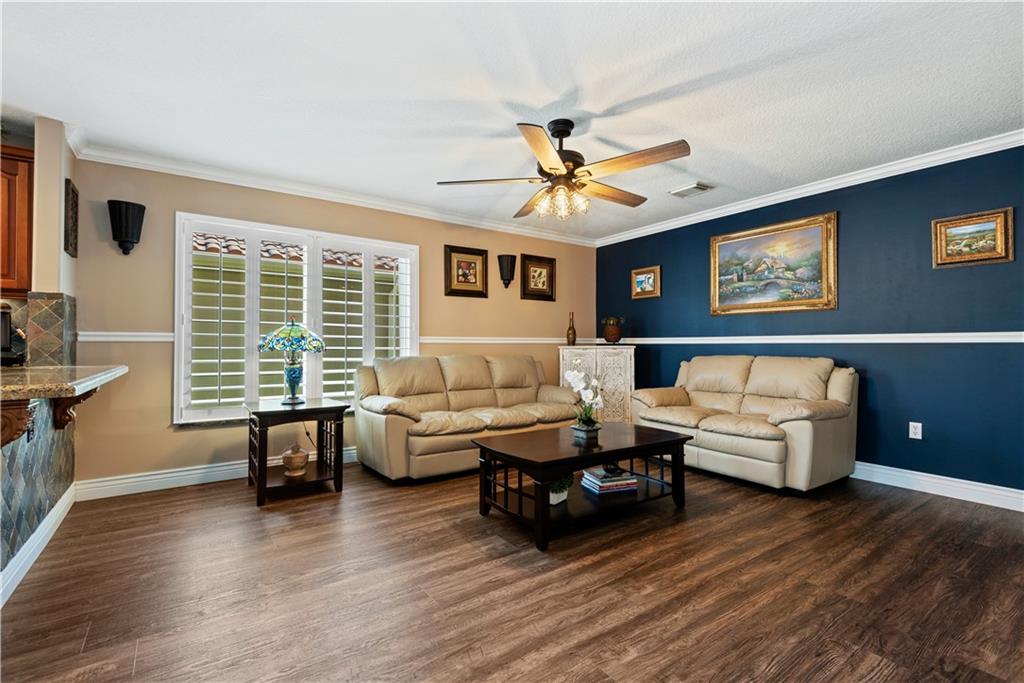 Florida living at its finest! Pride of ownership shows throughout this impeccably maintained cul-de-sac waterfront home. Originally a four bedroom home, the owners tastefully converted the fourth bedroom into a walk-in organized closet. A BRAND NEW ROOF will be installed prior to closing. Double hurricane protection with HURRICANE IMPACT GLASS & accordion shutters on all windows! Interior upgrades include updated kitchen and baths, wood flooring, crown molding, plantation shutters, new A/C, knockdown ceilings, and California closets. Exterior features include upgraded landscaping, screened in patio, travertine pavers, resurfaced pool, newer pool pump, newer sprinkler pump, and large fenced yard with amazing lake views and the ability to kayak and boat on the lake. Guard gated community!