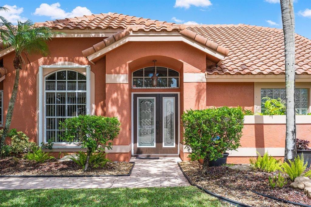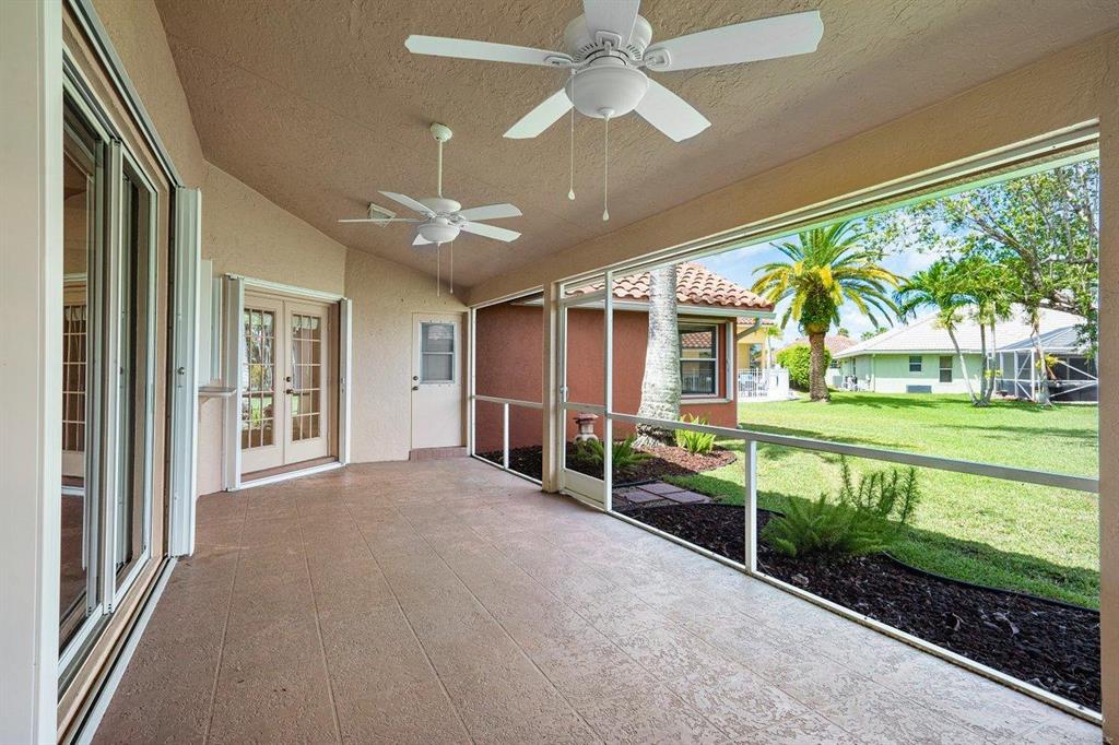 Absolutely outstanding one level expanded model w/ 4 bed 2.5 bath. Your dream home is fully hurricane protected and ready for your family! Home offers a split floorplan, vaulted ceilings in main living areas, neutral tile floors, and updated open kitchen overlooking the family room. There are french doors leading to the screened in and covered patio with lake views. A spacious master bedroom , walk in closet, plus bath with updated dual sink vanities, separate tub and shower. The roof and A/C unit is 2010 and the water heater is 2007. It has 3 additional bedrooms that share the cabana Bath with shower. This community has low monthly dues and provides 3 playground areas, 2 community pools, tennis courts, ''A'' rated school zone, and is just minutes to local dog parks, shopping & restaurants