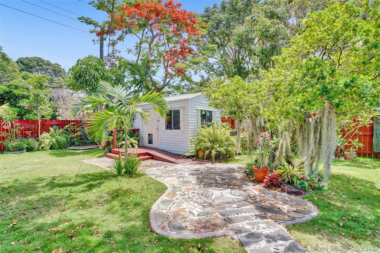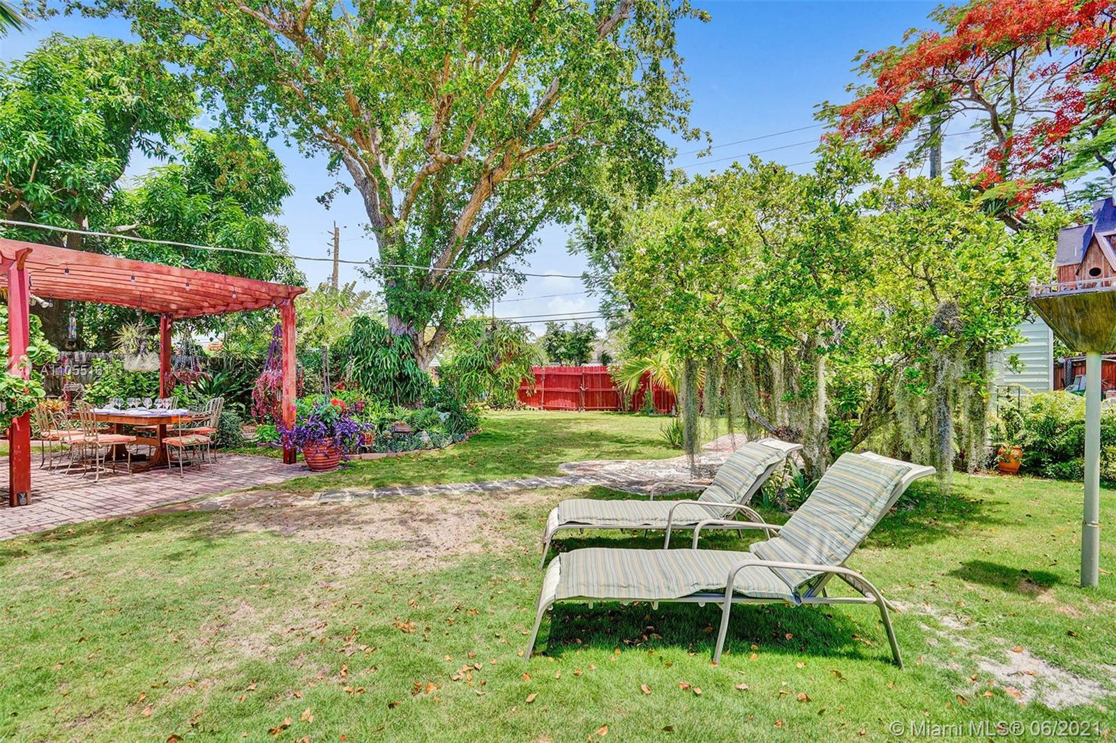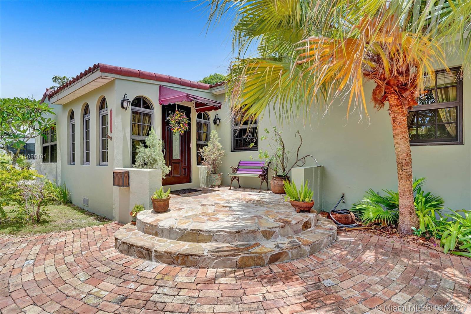 Charming and bright 3bed/2bath one-story house in prime location of Hollywood, East of US1. This well-maintained home features a circular driveway with Chicago bricks; impact windows along the front of the house; hurricane awnings on the side and back; concrete tile barrel roof; beautiful wood floors throughout; custom-made wood kitchen cabinets; updated bathrooms. Enjoy the very large fenced backyard with lavish landscape & trees, a pergola for dinner under the stars & a unique guitar-shaped walkway. Shed for extra storage with A/C & electricity. Strategically located between Miami and Ft. Lauderdale, a few blocks to downtown Hollywood Arts Park, restaurants & a short drive to Hollywood Beach Boardwalk. Close to supermarkets, Gulfstream Park, Aventura Mall & Ft. Lauderdale airport.