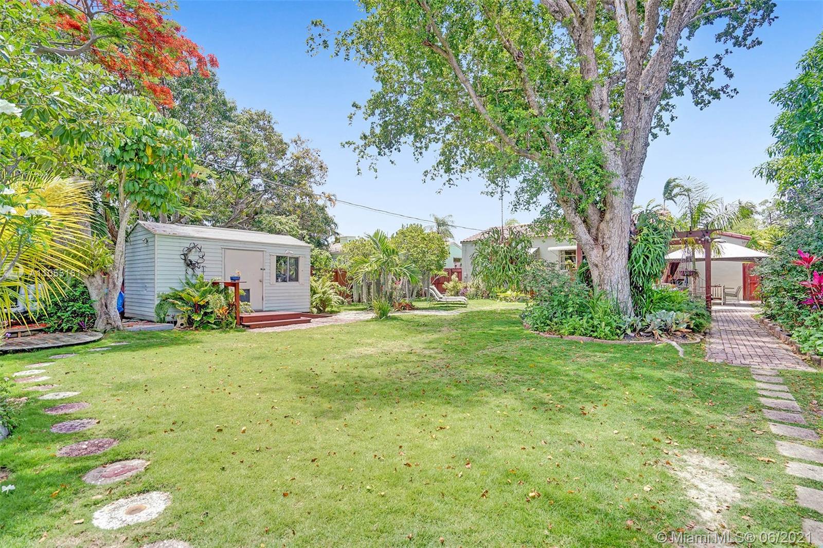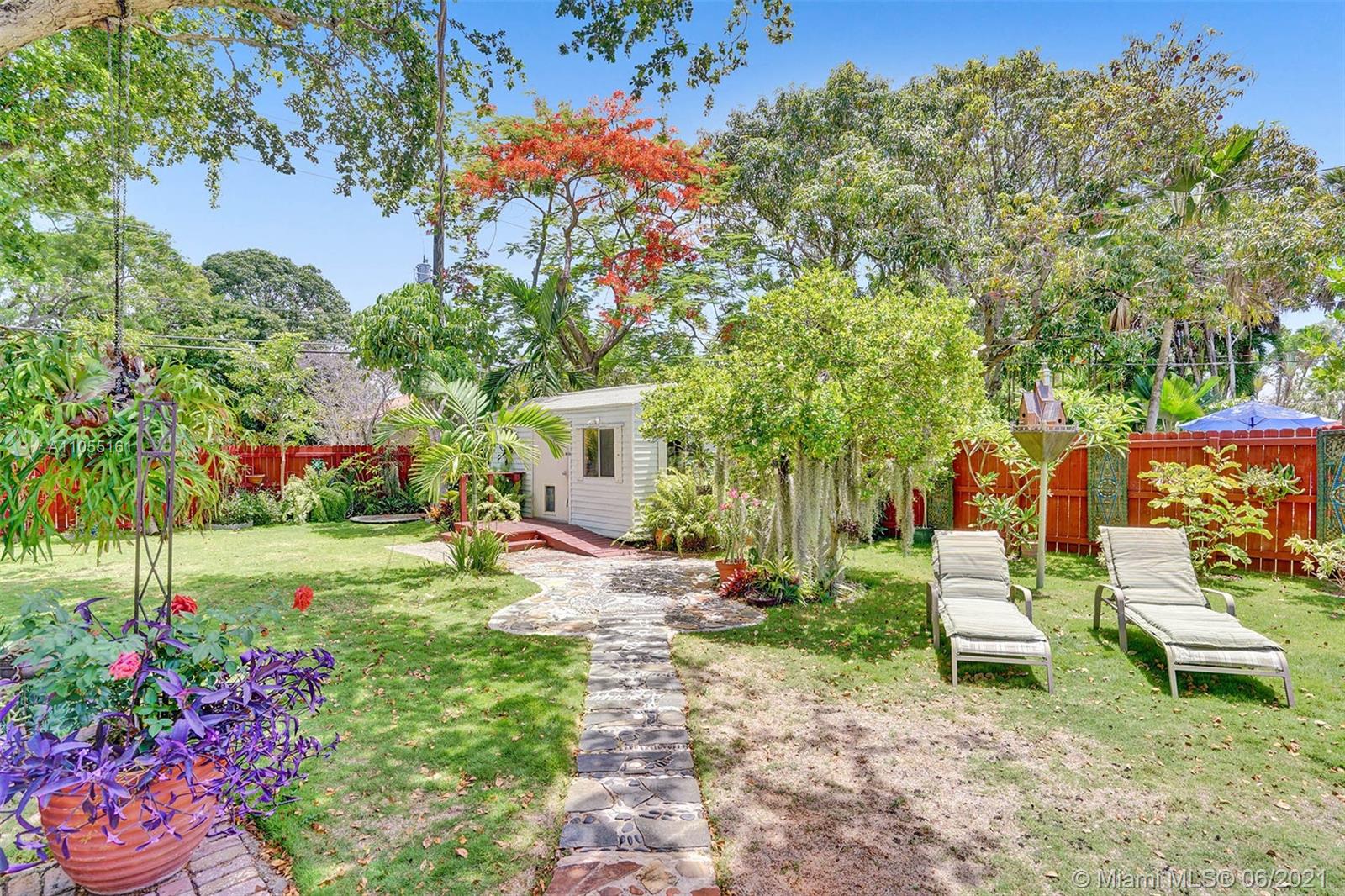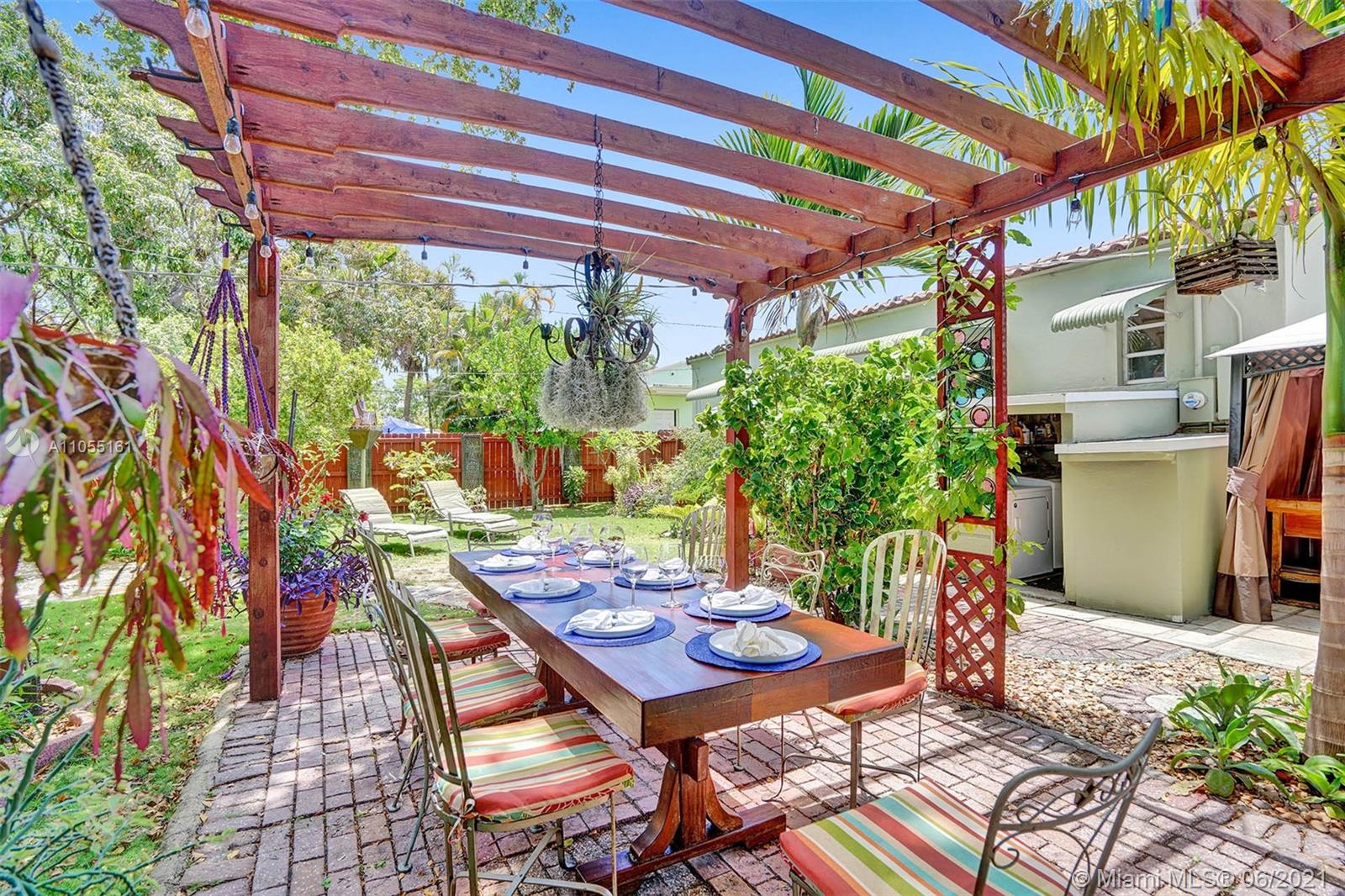 Charming and bright 3bed/2bath one-story house in prime location of Hollywood, East of US1. This well-maintained home features a circular driveway with Chicago bricks; impact windows along the front of the house; hurricane awnings on the side and back; concrete tile barrel roof; beautiful wood floors throughout; custom-made wood kitchen cabinets; updated bathrooms. Enjoy the very large fenced backyard with lavish landscape & trees, a pergola for dinner under the stars & a unique guitar-shaped walkway. Shed for extra storage with A/C & electricity. Strategically located between Miami and Ft. Lauderdale, a few blocks to downtown Hollywood Arts Park, restaurants & a short drive to Hollywood Beach Boardwalk. Close to supermarkets, Gulfstream Park, Aventura Mall & Ft. Lauderdale airport.