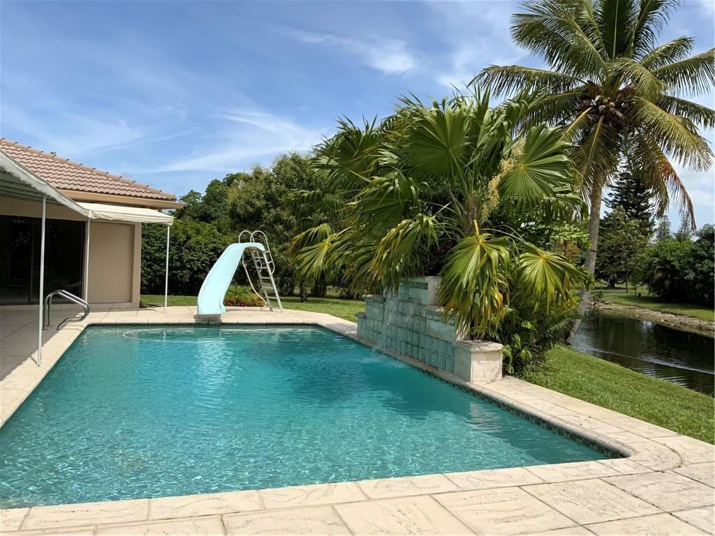 No HOA.Quiet backyard overlooks canal & tennis courts.Never on market, builders own home, with upgrades: skylight, atrium in master bath, whole house radio/intercom system, & central vacuum.Open family rm with professionally painted walls & wood paneling. Wood burning fireplace.Gourmet kitchen, SS kitchen Aide appliances.New wall oven/microwave in addition to the range, new wine cooler & cabinet wine racks.Granite inside & out.Open pocket windows to pass through to the patio bar, grill & sink with outside cabinets.Marble countertops & floors in baths.Glass block & 24k plated Swan fixtures in 2nd bath.Walk-in & hall closets. Home Gym, fitness equipment included!Open pocket doors to swimming in oversized 8ft deep pool.The laundry rm has a granite top desk. Fruit-bearing trees & Coconut palms