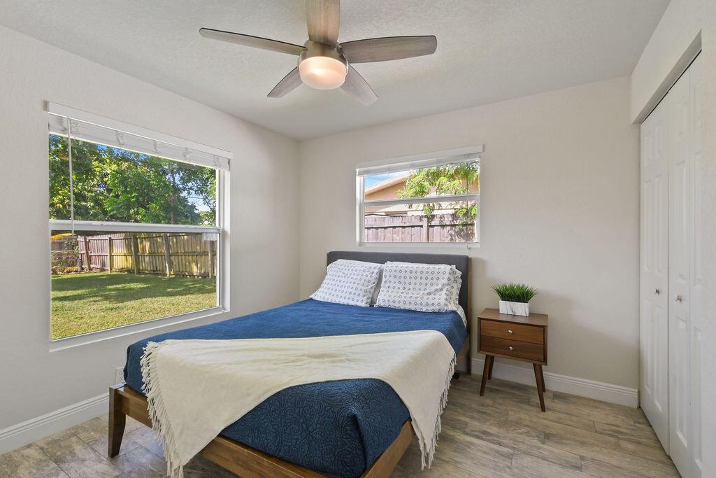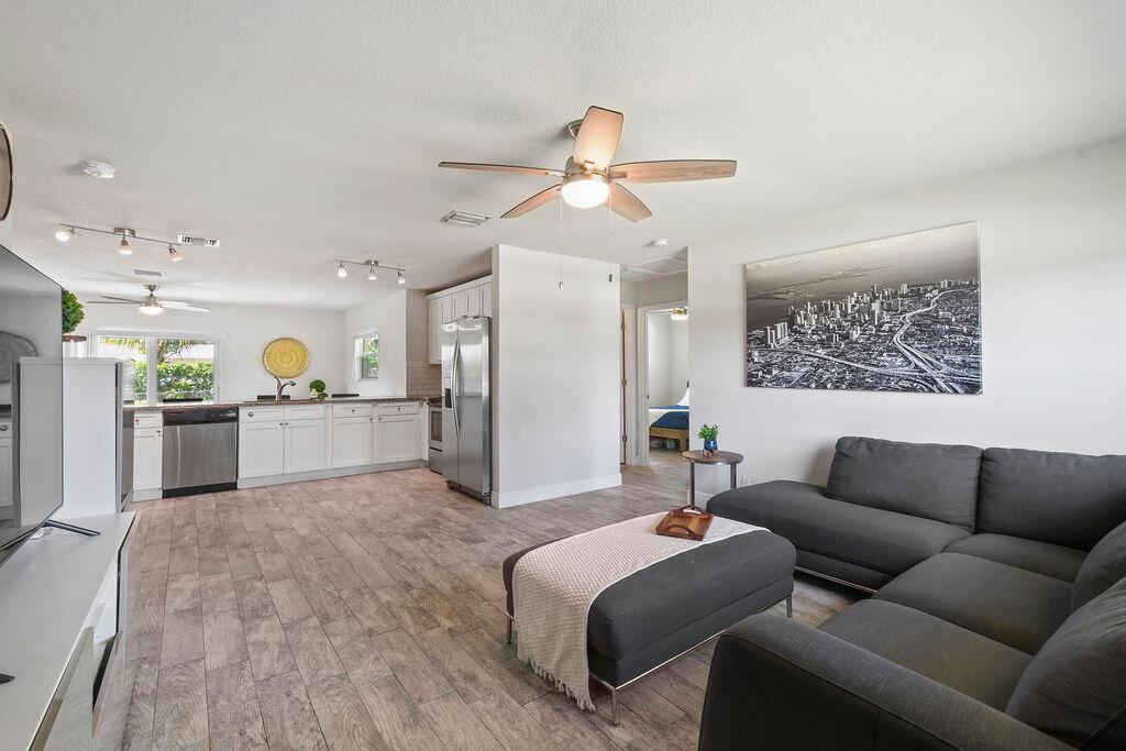 Own this rare find, a fully renovated gem less than 15 minutes from the best beaches in Palm Beach County! This home has been completely updated with all new flooring, granite countertops, new light fixtures, and custom finishes throughout. The expansive back yard features lush landscaping and a fruit bearing avocado tree. The home was meticulously remodeled to feature an updated design with a light and airy open concept layout. The property is effortlessly secured during storm season with complete impact glass. The beautiful exterior paint job was completed June of 2021 and the new roof, electric and AC updates were all completed in 2016. Move right in and start enjoying this space for summer.
