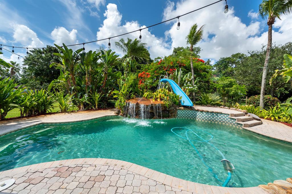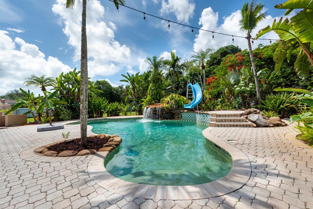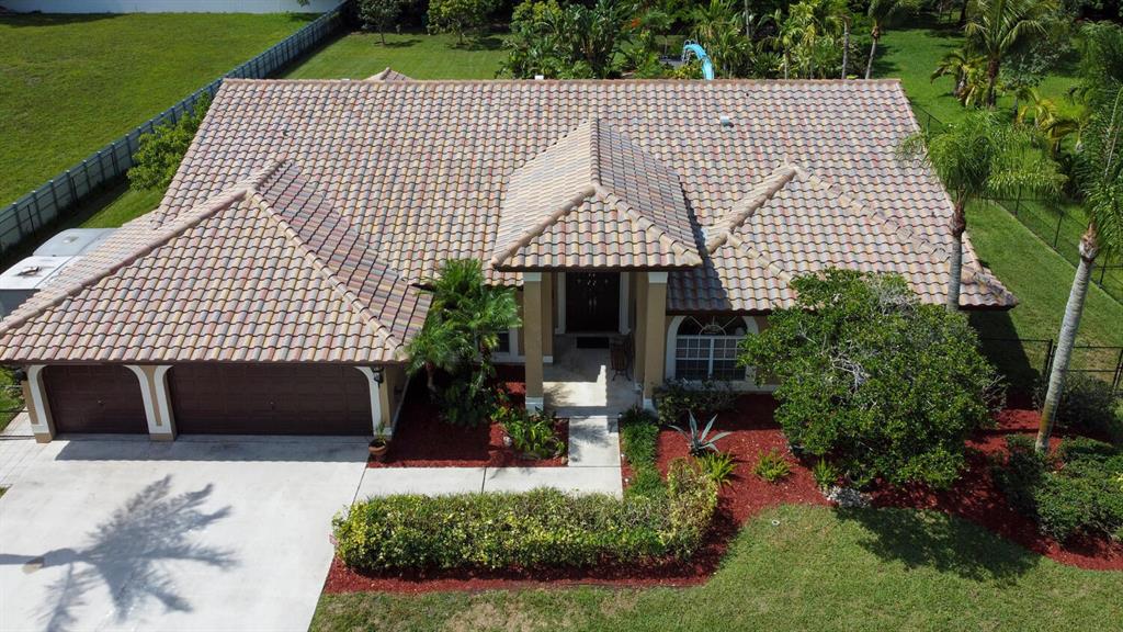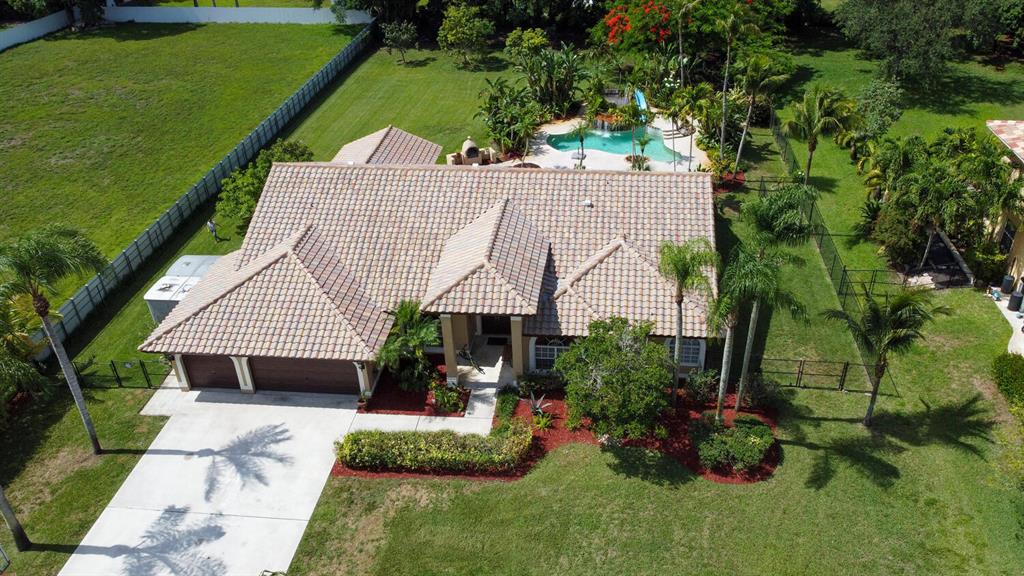 YOUR BEAUTIFUL TROPICAL OASIS AWAITS!! This is a very rare opportunity to own your private custom 5 bedroom, 3 bath, 3 car garage home on a builder's acre. This amazing home is located on a quiet cul-de-sac, with no homes across the street, no HOA, and horses are welcome! It's long driveway accommodates at least 10 cars, an RV and/or boat. As you enter the home, you will be in view of your very own tropical pool oasis outback. The home boasts an open floor plan with high vaulted ceilings, a large master suite, an open kitchen with stainless steel appliances, granite countertops and a reverse osmosis system to ensure that the water is ultra filtered and pure. The 3 full bathrooms have all been renovated with high-end finishes. The roof is BRAND NEW (June 2021) with a WARRANTY...