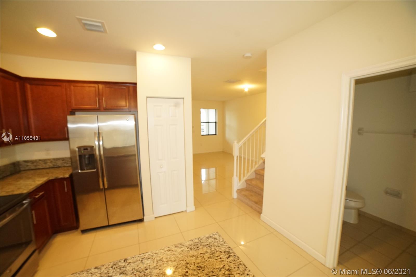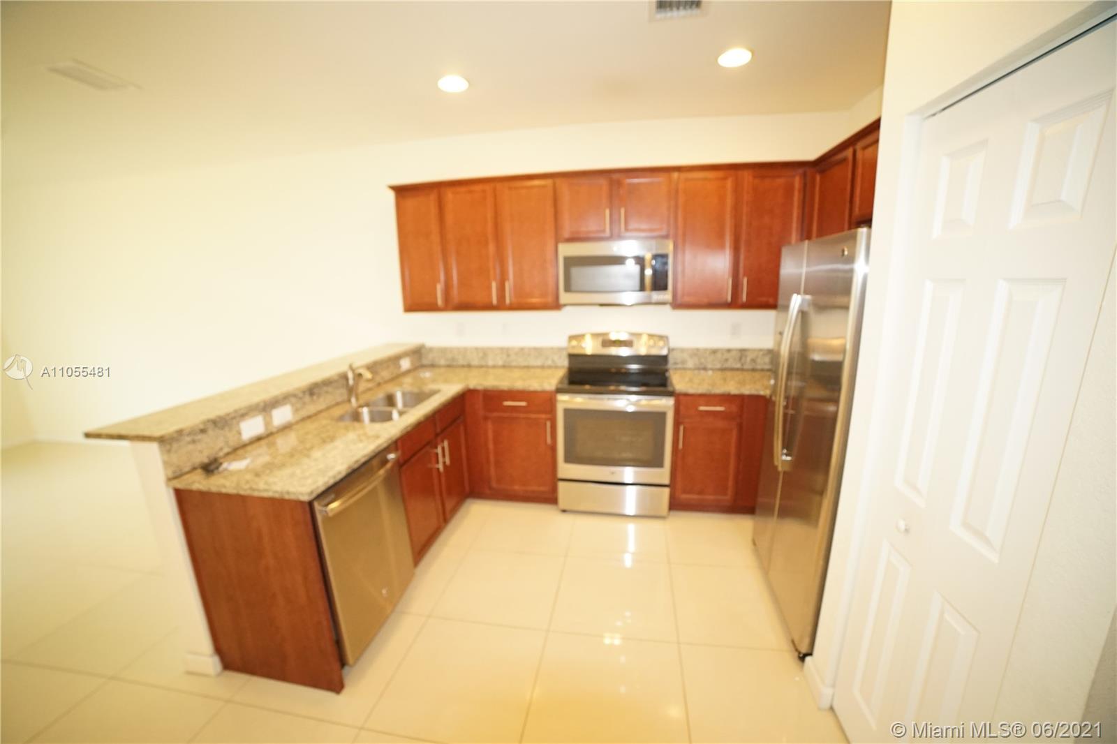 LOCATION,LOCATION !!!! Four Bedrooms Townhouse, 1 bedroom and 1 Full Bath downstairs. Wood cabinets and Granite Countertop, Stainless steel Appliances , Porcelain tile on first Floor, carpet on second floor, Washer and dryer on the second floor, Paver Patio and no neighbors behind 1 car garage with automatic door !!! Close to New shopping center and restaurants !!