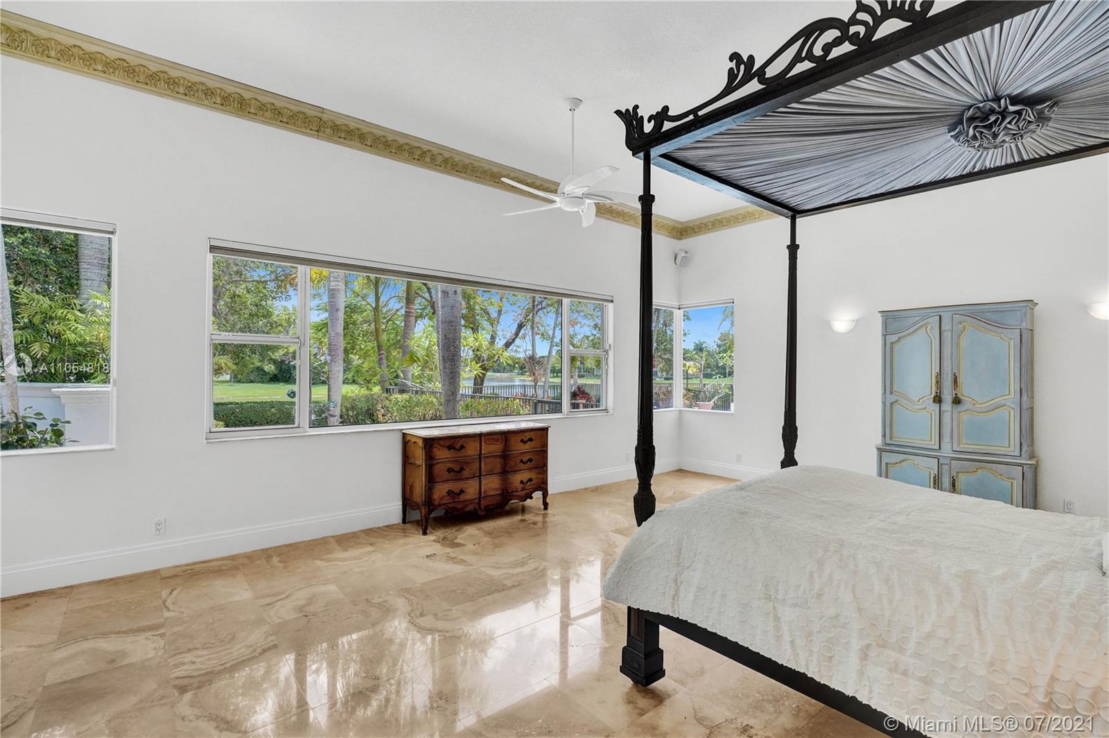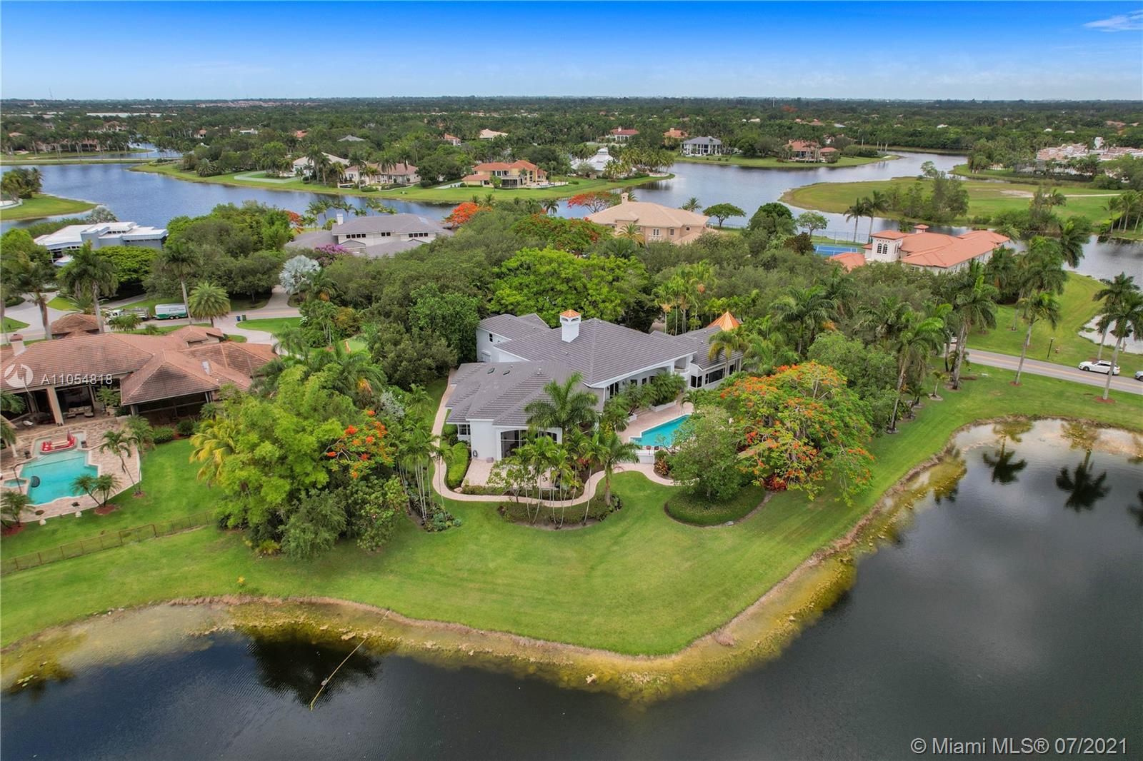 FIRST TIME ON THE MARKET! Absolutely captivating & private lakefront residence in the sought after neighborhood of Windmill Ranch Estates! Not a detail was spared in this incredibly planned two story estate home - perfect for entertaining & luxury living. Features include: Serene 1.49 acre corner lot, grand entry with Porte cochere, 3 car garage, NEW roof, hurricane impact glass, 5 bedrooms, 4 1/2 baths PLUS gym, office, library, wine room & bonus room, oversized master suite with spa-like bath & separate outdoor spa, living room with soaring ceilings & fireplace, gourmet kitchen, 2nd office, family room with endless views, summer kitchen & resort style pool - all together with peaceful & relaxing walkways around the property to enjoy the picturesque lush landscaping & beautiful sunsets!