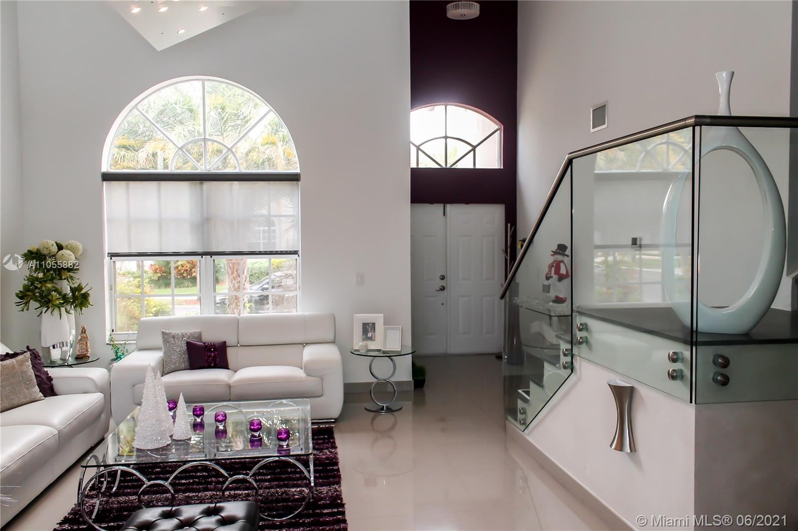 Excellent waterfront property in the best community at Doral. This luxurious 2 story residence is located in Doral Isles, a gated resort style community with access to a clubhouse, gym, 3 pools, soccer field & basketball court, 6 brand new tennis courts, kids playground and 2 private event rooms and an almost 2 miles walk/running path with serene views of beautiful lakes and trees.