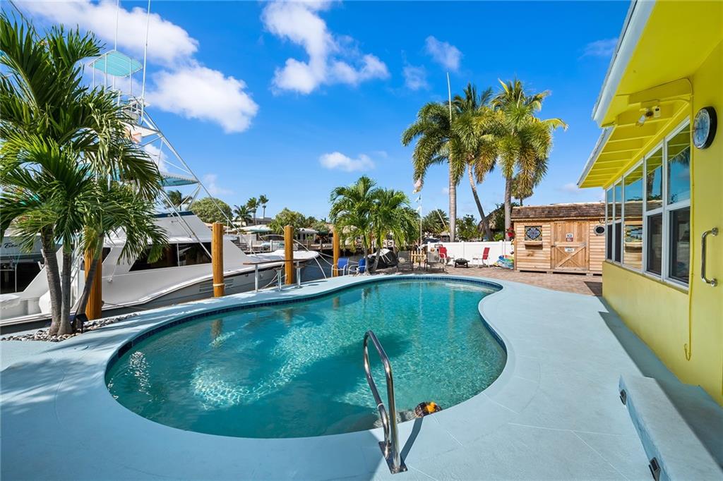 Boater’s delight Key West inspired 2 bed 2 bath home located in Pompano Isles, east of US-1 with no fixed bridges! This lot sits on 60 ft of canal frontage with a new deep water dock and can accommodate up to a 50’ boat. Step inside and you will find tile floors throughout the entire house, with direct water views and an abundance of natural light from nearly every room. Features include a laundry room, one car garage, hurricane impact windows & sliding doors leading you to this tropical outdoor paradise on the canal. Fenced in, this backyard has plenty of tranquil outdoor space with a heated saltwater pool, outdoor shower, fruit trees, and air conditioned entertainer’s shed! Walking distance to many shops and restaurants, and minutes from the beach, this is a home you don’t want to miss.